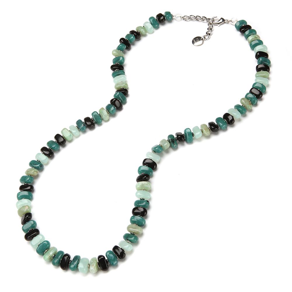 Like tiny tumbled stones of color, the Desi necklace is classic & cool. Wear long or doubled, or layer with metallics or pearls.