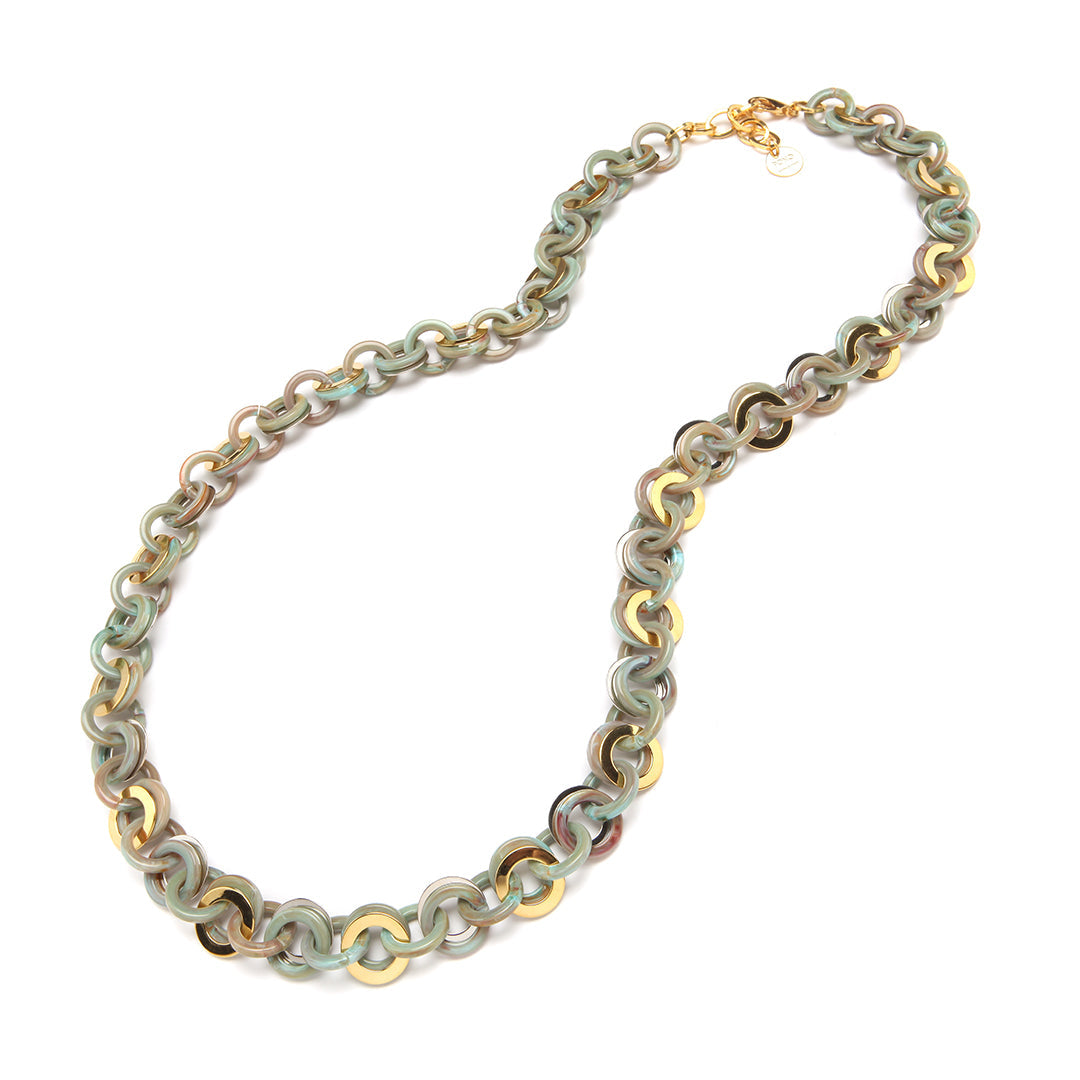 Light and shine, resin and metallics combine to effortlessly capture the essence of nautical chic. This versatile necklace may be worn either long or doubled.
