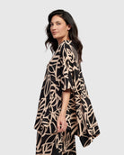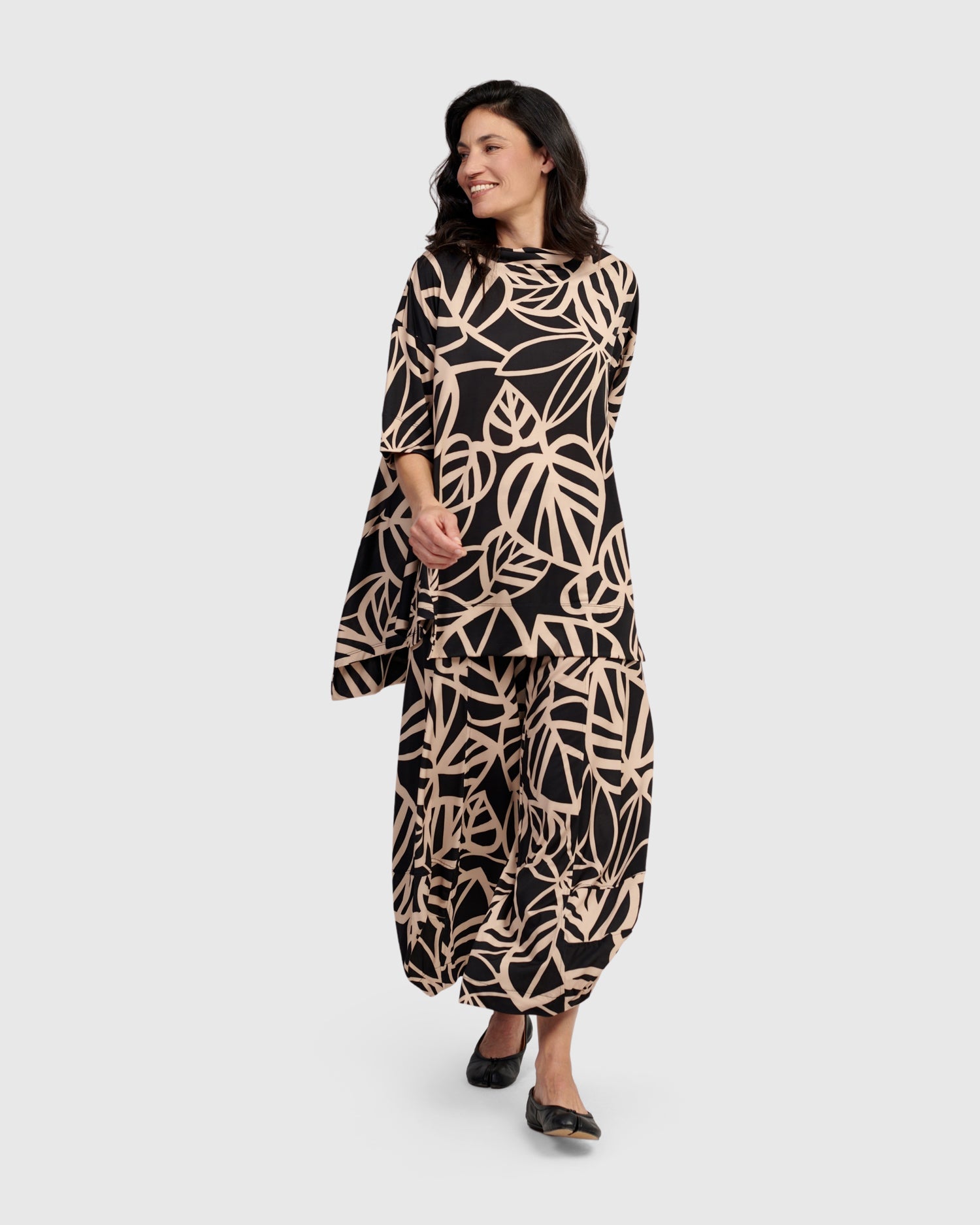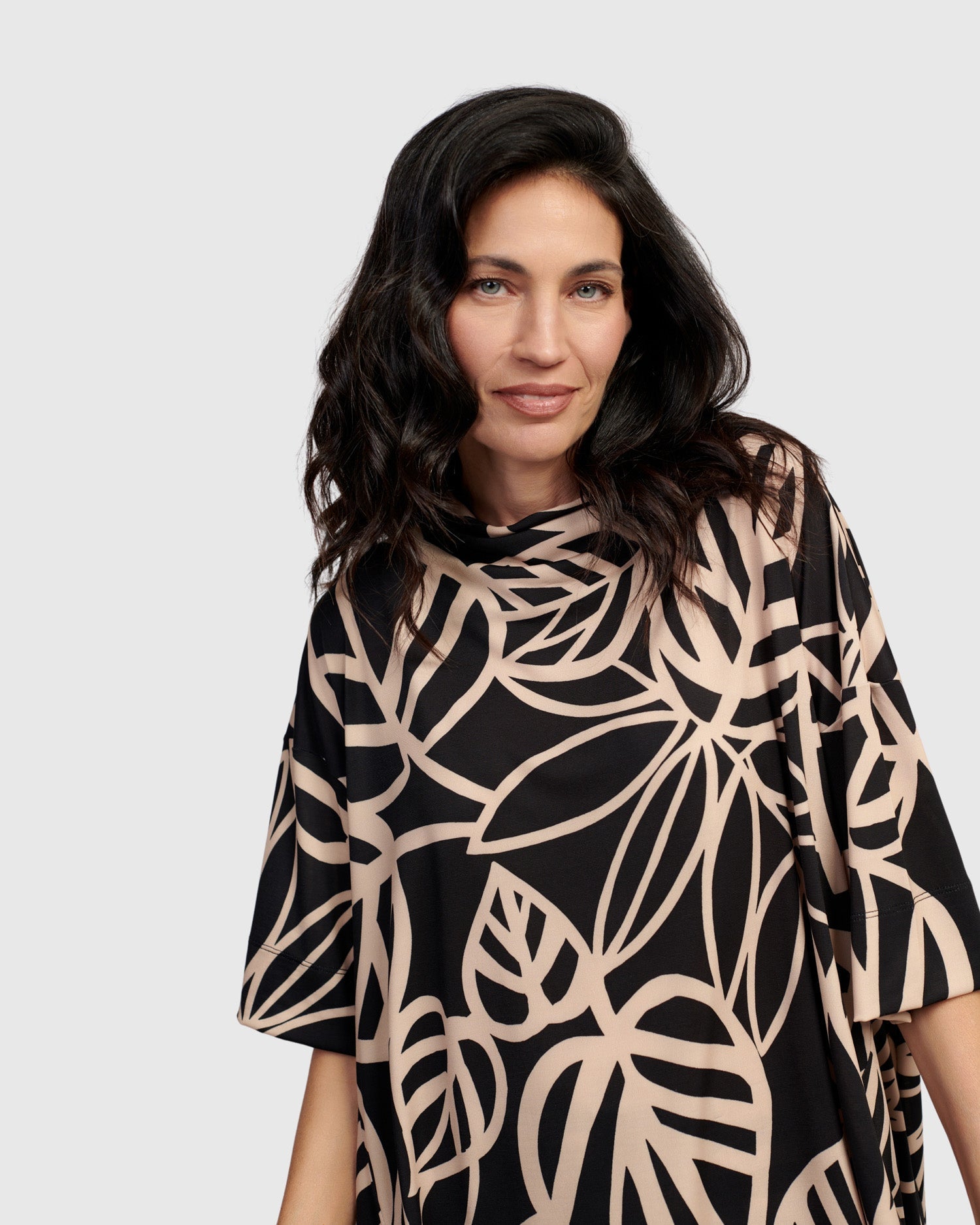 One of our most popular silhouettes because it flatters every body, our signature Trapeze Top has a funnel neck, drop shoulders, elbow sleeves and bias cut sides for a roomy fit. Swingy, chic and finished with notched details at the hi-lo hem.