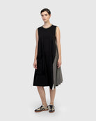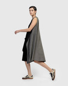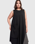 Ultra chic and swingy, this sleeveless midi dress has a crew neck, oversized front patch pocket, and a hidden side pocket. Made in a mix of midweight cotton knits, it falls gracefully, offering a roomy oversized fit with an A-line silhouette.