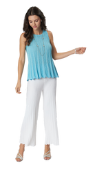 Molly Shimmer Sleeveless Pleated Swing Top; Aqua Silver