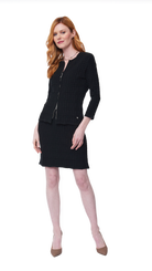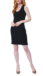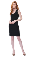 Square-detail knit sleeveless sheath dress; Scoop neck; Above knee; Looks good with the matching Zia Jacket; Made of high stretch supple viscose blend;