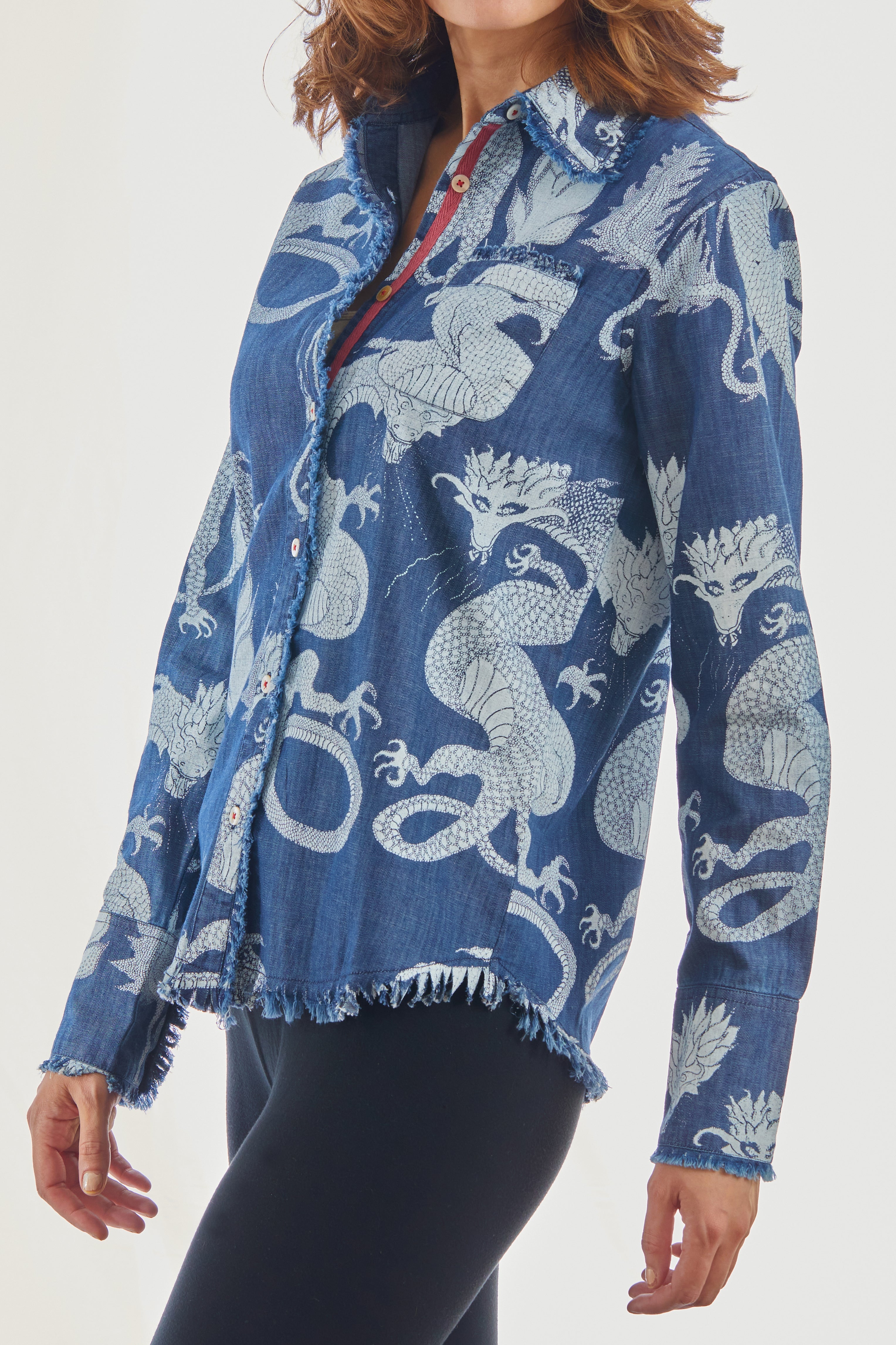 The Cape Cod shirt with denim fantastic print is here! Get ready to look amazing in this one-of-a-kind print. Whether you're out keeping up with the fashion world or just trying to look fire, this shirt will be your go-to outfit!
