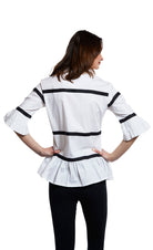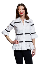 This white peplum top is anything but basic thanks to its playful ribbon trim. Perfect for adding a touch of whimsy to any outfit, this top is versatile and unique. The Lexington Peplum Top is a must-have for anyone wanting to stand out with style!