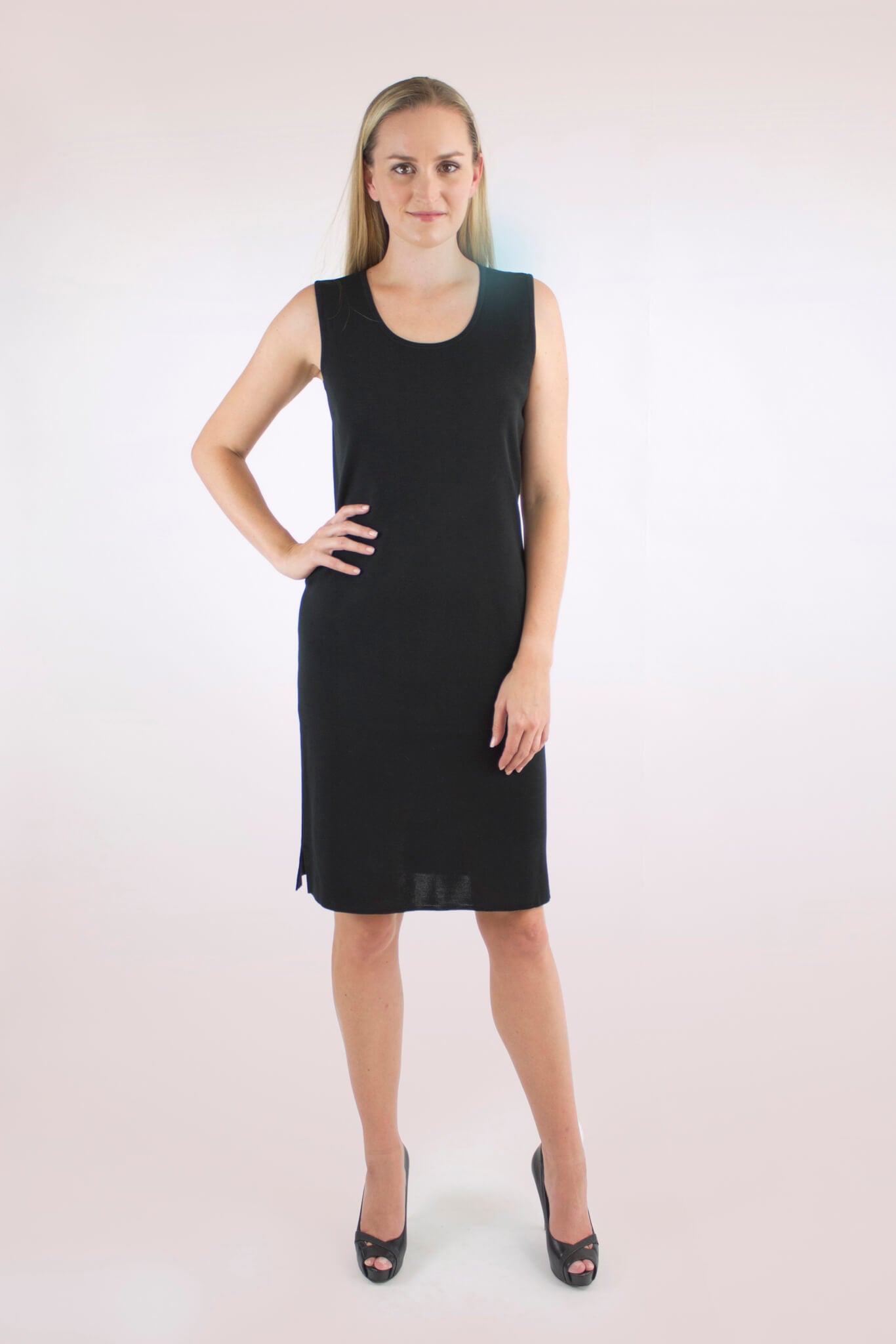 This knit tank dress offers a refined blend of comfort and style, crafted to provide a sleek silhouette with breathable fabric ideal for layering or wearing alone.