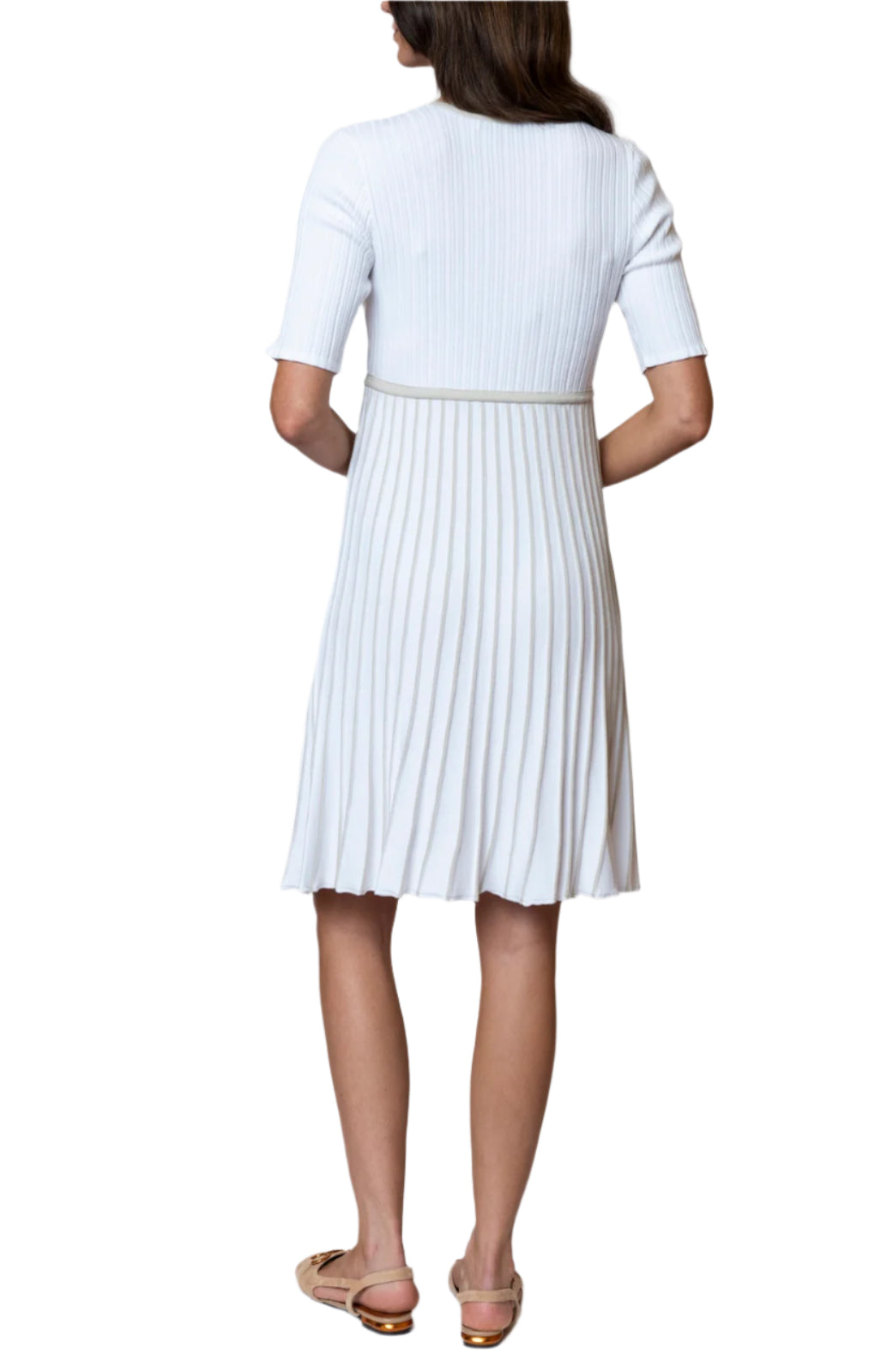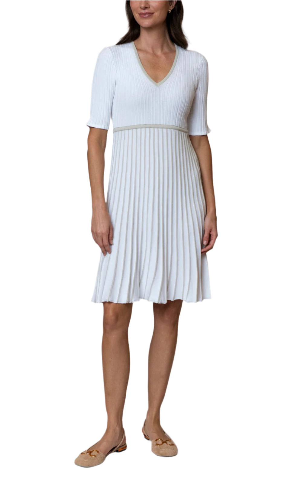 Pleated Short Sleeved Dress; Empire waist; Knee-length; V-Neck; Made of high stretch supple viscose blend;