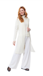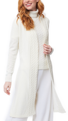 Long knitted coat with cable-knit detail along the front, a belt and side slits; Cashmere blend;
