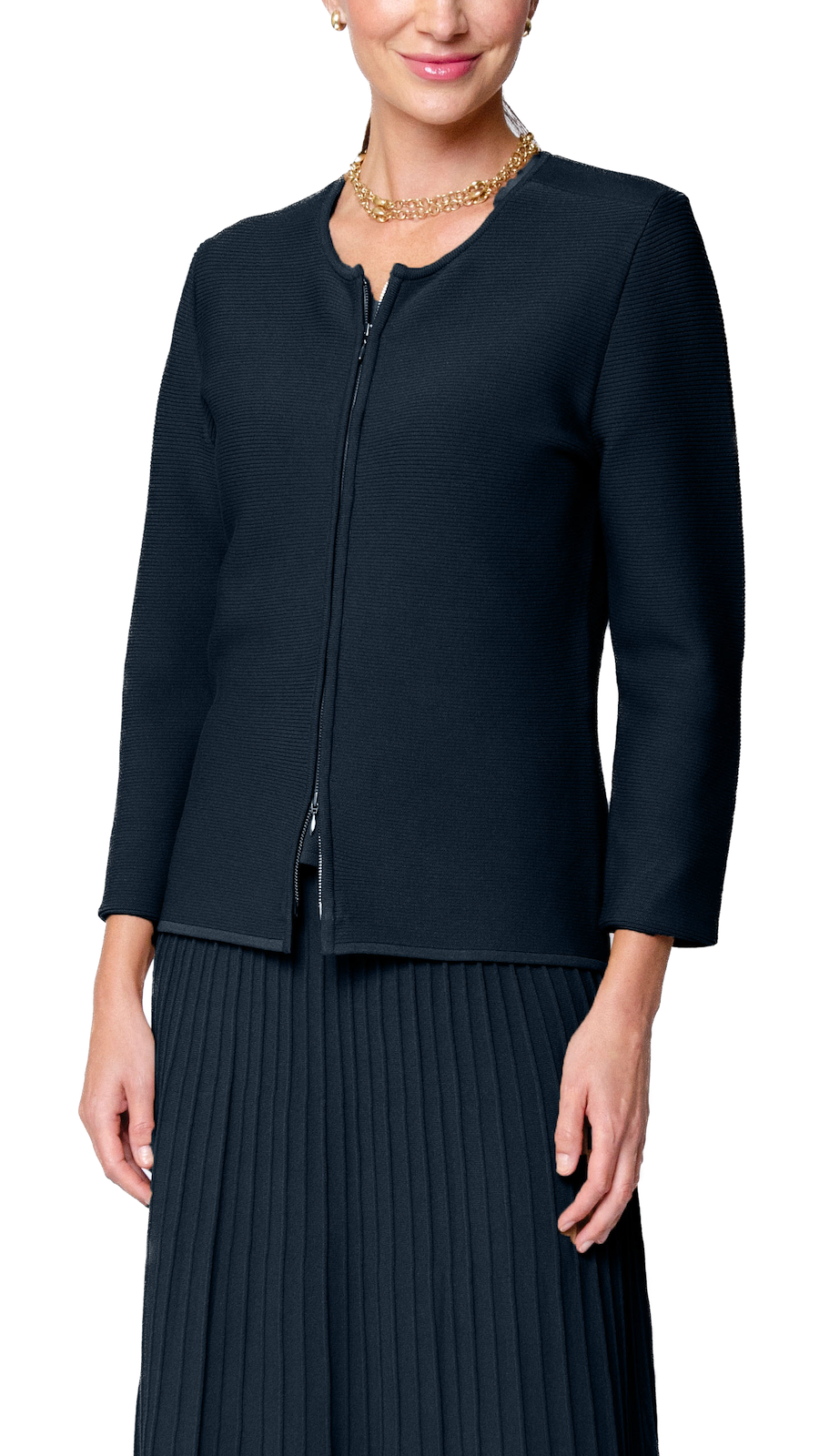 Ripple-knit Jacket; Crew neck; Full Length sleeves; Two-way zipper; Made of high-stretch supple viscose blend;