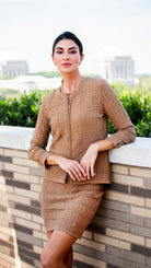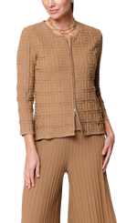 Square-detail knit Jacket; Crew neck; 3/4 sleeves; Two-way zipper; Made of high-stretch supple viscose blend; Pairs well with the Vera dress, The Julia pants and the Giuliana pants