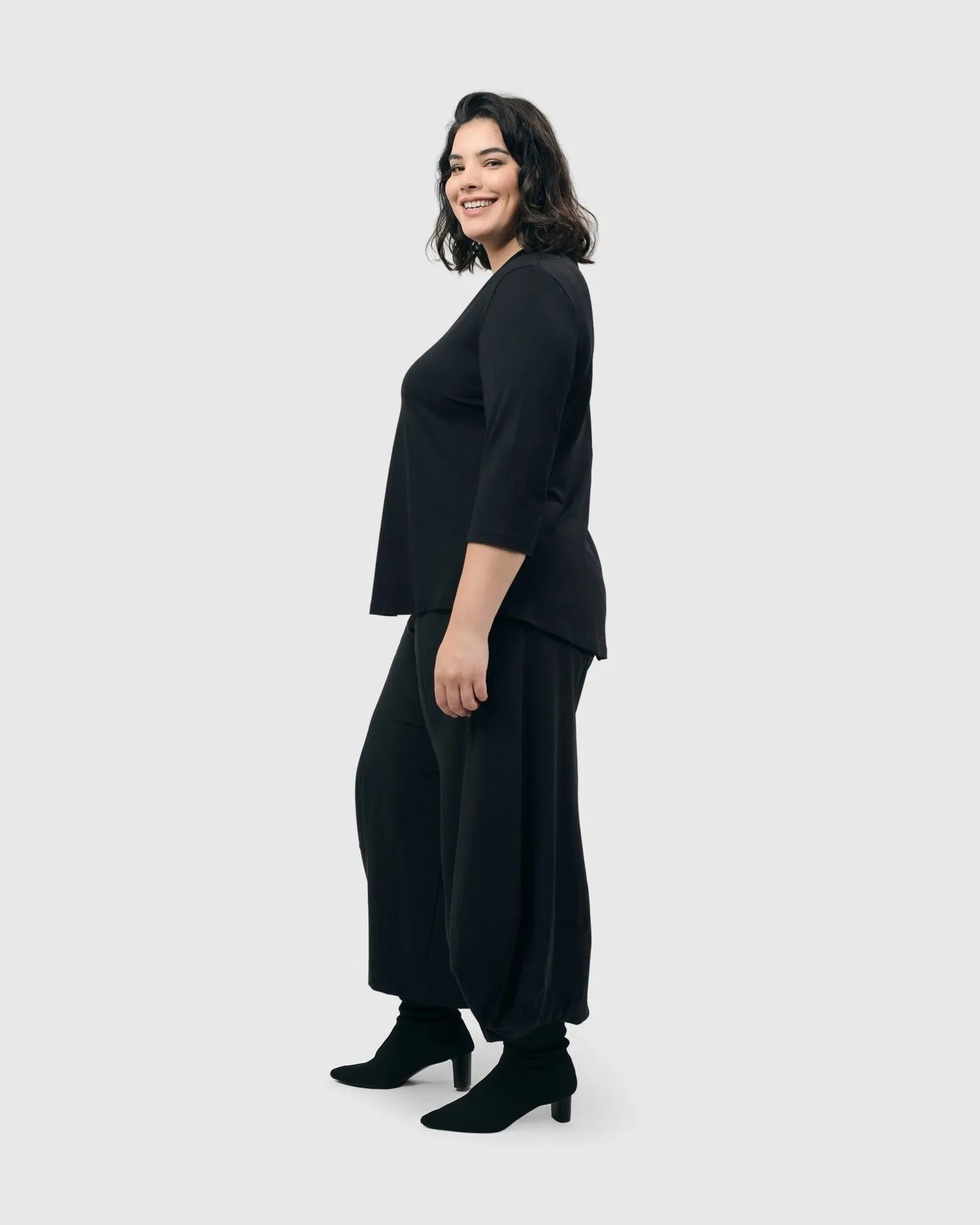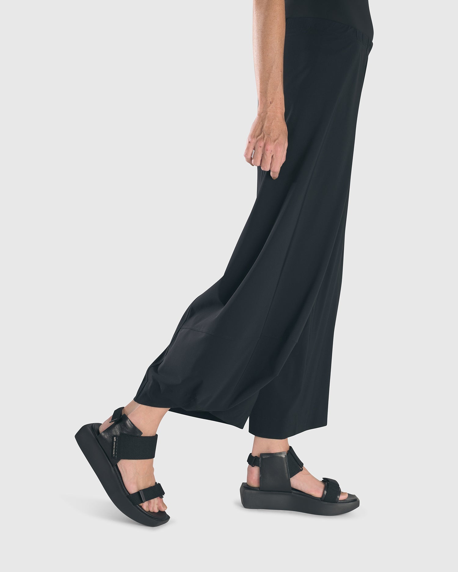 One of our greatest hits, made with our exclusive TECHNO fabric, which has it's own ECO SYSTEM: stretchy, cool-to-the-touch, resists pills and wrinkles, and boasts built-in UPF 50+ sunblock. All-around elasticized waist, mock fly and tapered, signature pouf hem.
