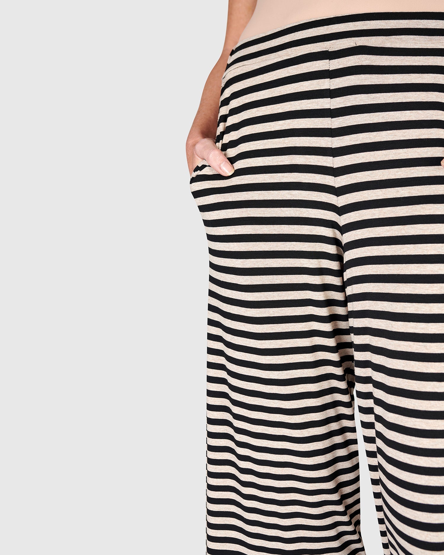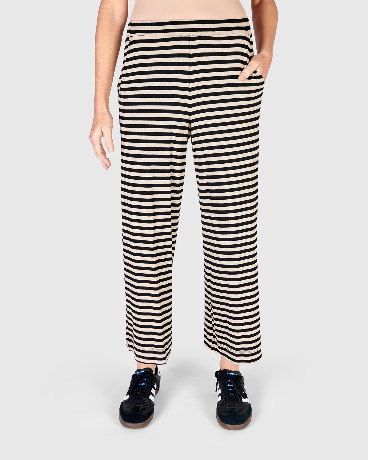 So swingy! These high-waisted cropped lounge pants are made in a bouncy soft jersey knit fabric with an all-around elastic waistband for maximum comfort. A relaxed straight leg with side pockets offers room for movement and flexibility.