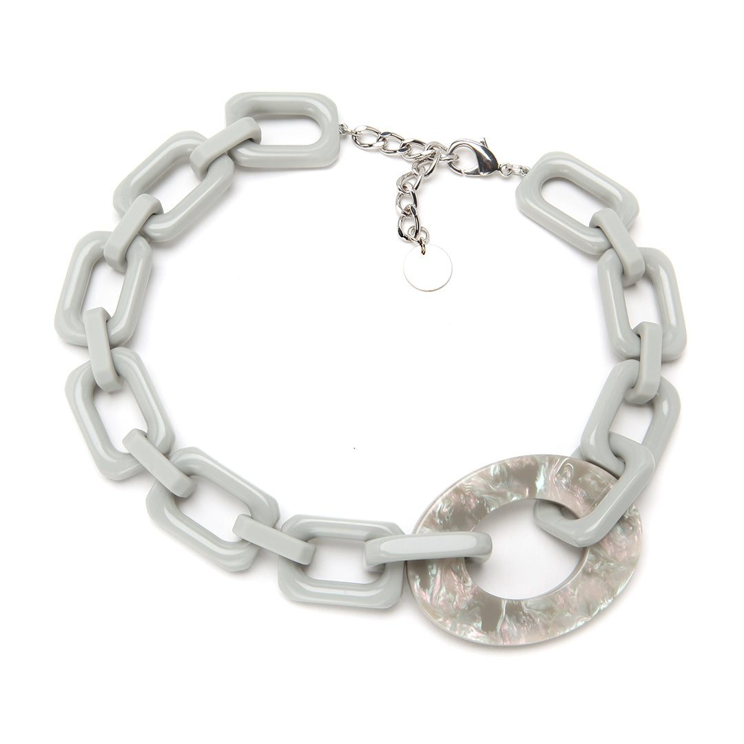 Where the city meets the sea...the urban sophistication of our chain link mixes with our oval statement piece, inspired by colors from the bottom of the sea.