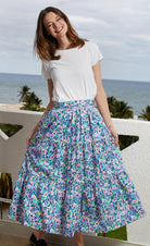 Blossom into style with our Woodstock Skirt! This midi cutie features an elastic back for ease, side seam pockets for convenience, and a playful few tiers that will sway you into summer vibes. With flowers galore, it's the ultimate effortless, summery statement—perfect for warm-weather fun!