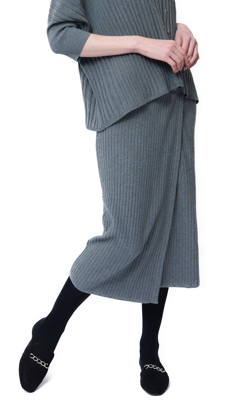 Rib-knit fo-wrap midi skirt; Elastic waist band; Soft touch modal blend