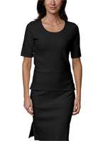 Short sleeved mini-square-knit top; Round neck; Viscose blend
