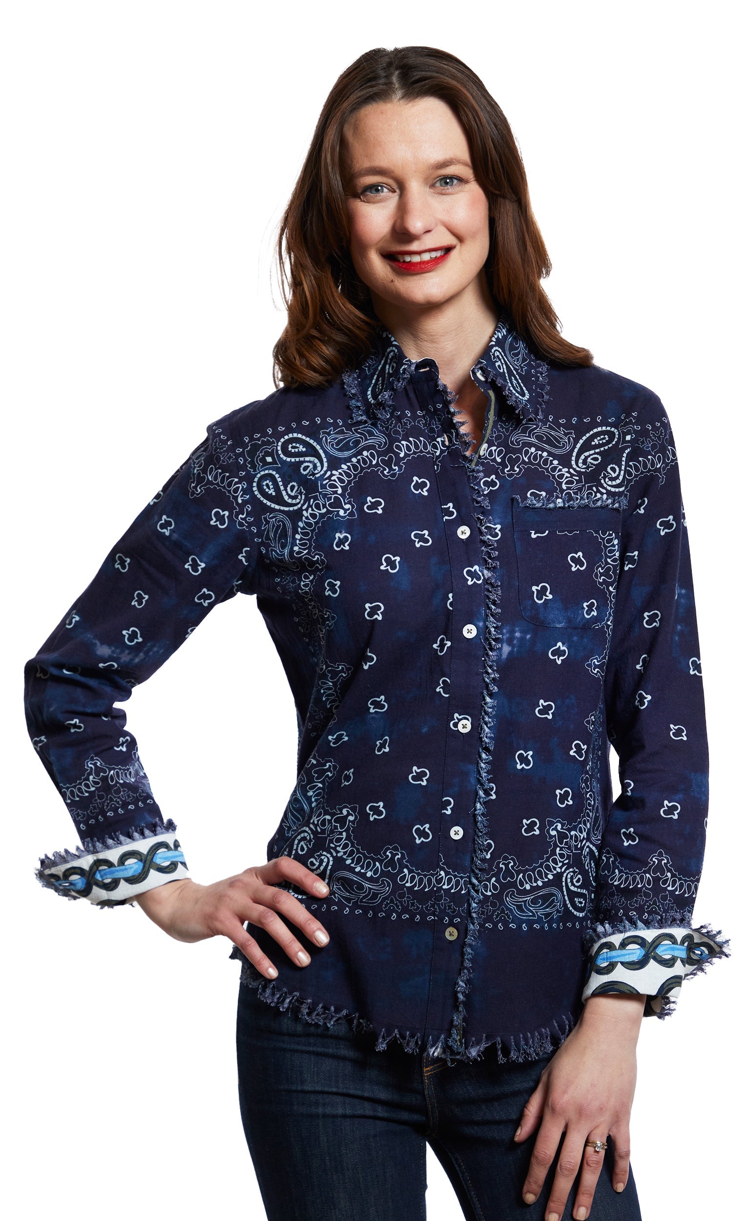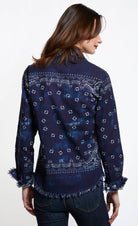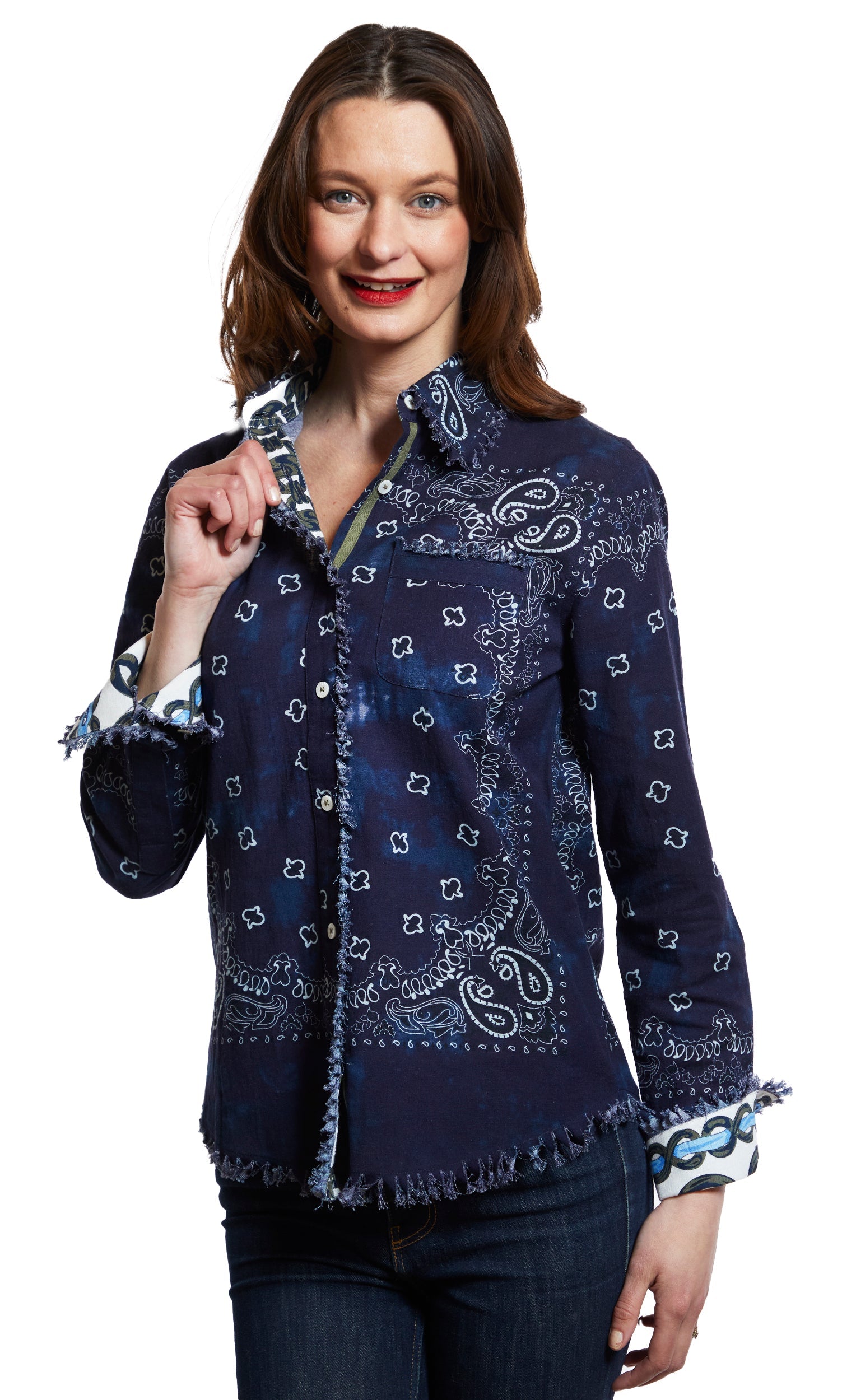 Take a trip to the Cape with this Indigo Bandana Print Top. Perfect for adding a touch of coastal charm to any outfit. Made with high-quality fabric.