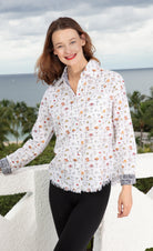 Satisfy your wanderlust with our Cape Cod Top featuring a fun and playful martini print. Made with high-quality fabric, this top is perfect for any occasion. Pair it with your favorite snacks and drinks for a delightful look that will transport you to a carefree summer day on the Cape!