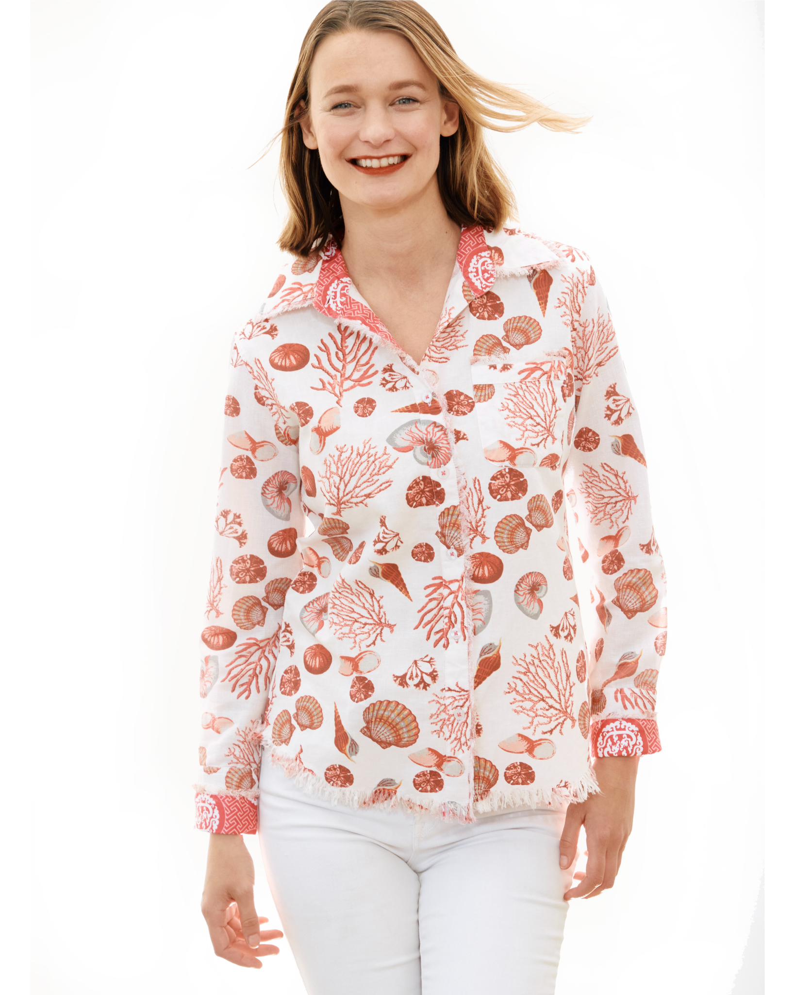 Cape Cod fringe tunic in pink sand and pink shells, everyone will see this and wish they had one too!