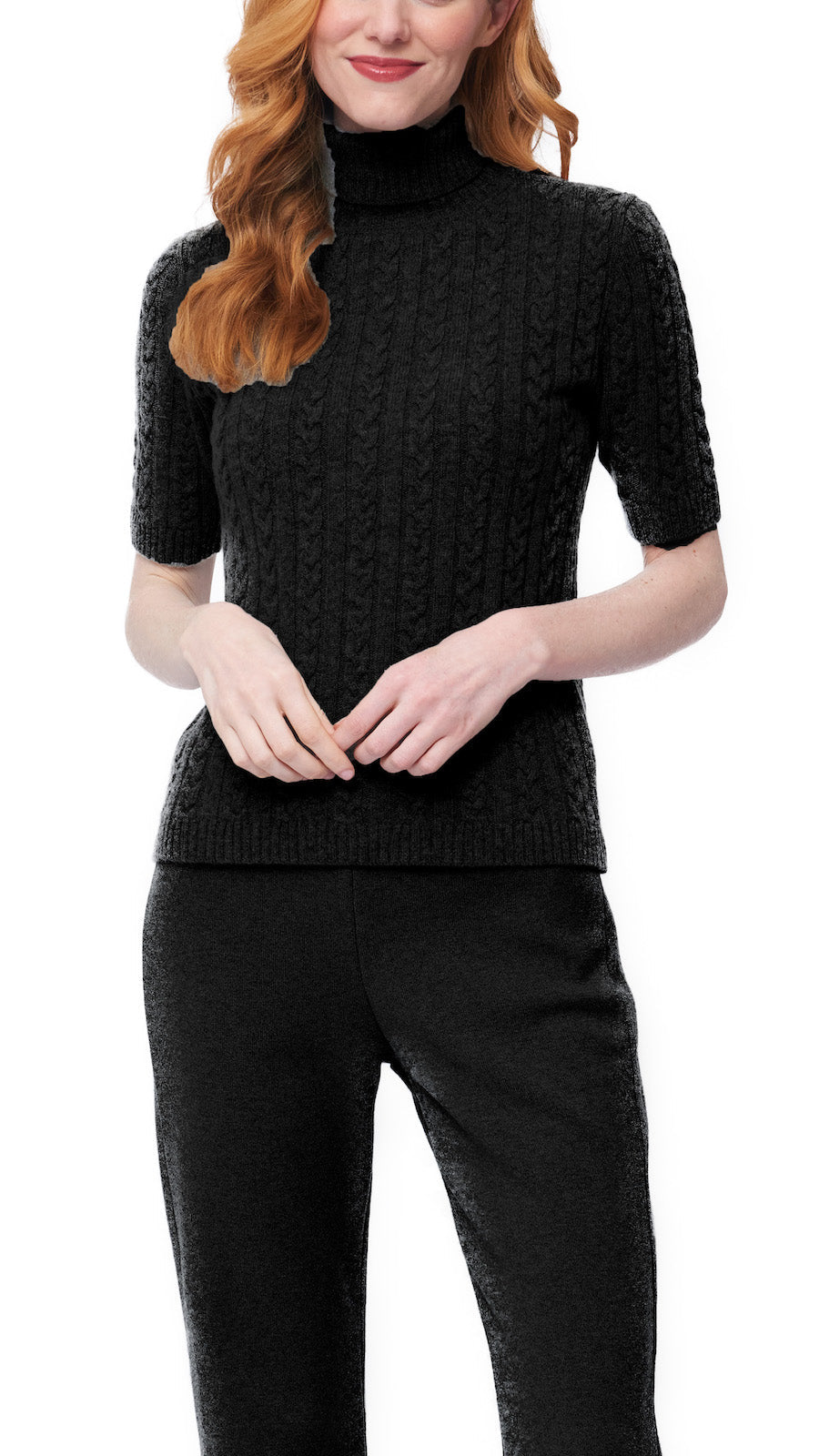 Lea Short Sleeved Cable-Knit Turtleneck, Black