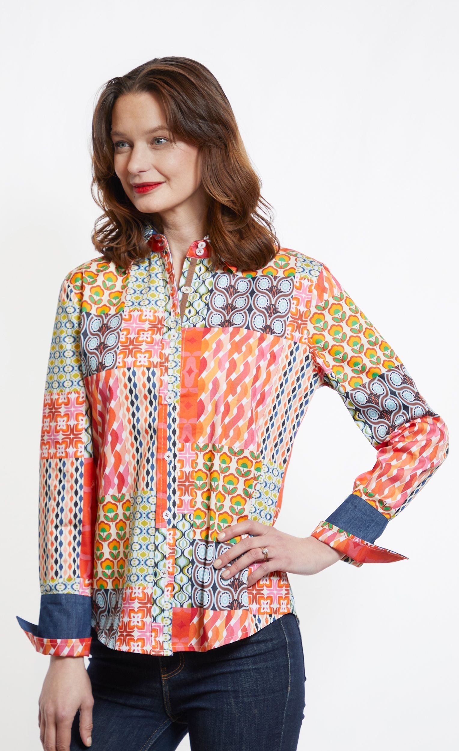 The Rome Shirt Multi Patchwork Print is perfect for those looking to add some fun to their wardrobe. Featuring a unique patchwork print, this shirt is sure to make a statement. Pair it with your favorite jeans for a playful, stylish look.