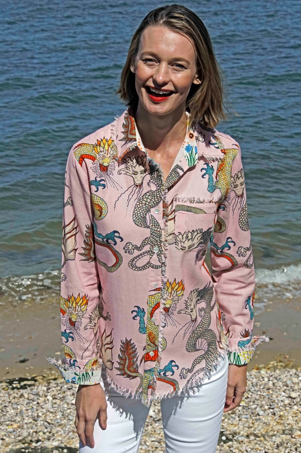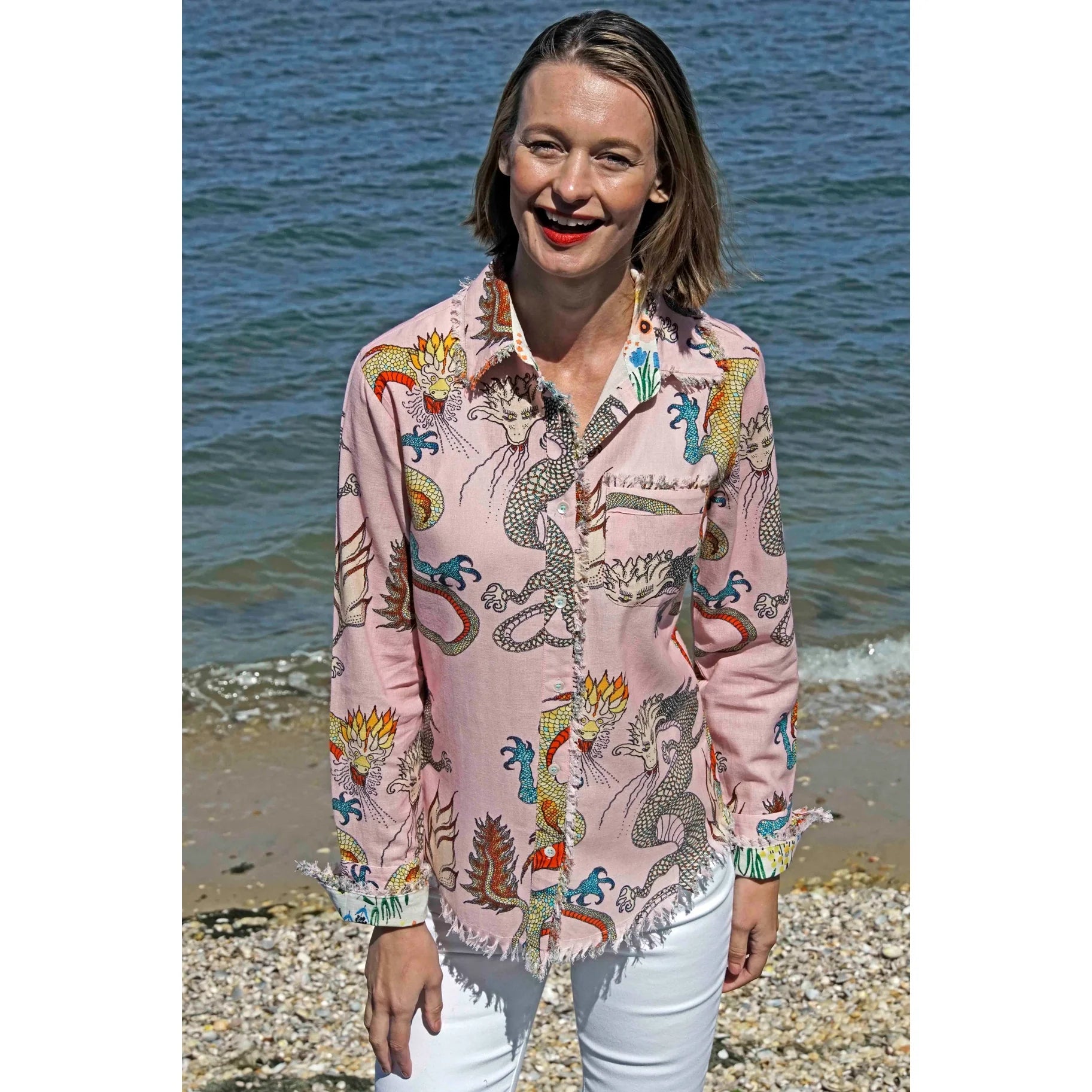 Rome Shirt 3/4 Sleeve Pink White Ikat