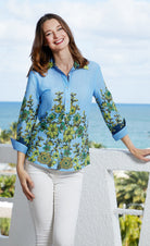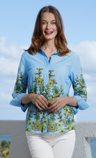 3/4 Sleeve Rome Shirt Light Blue And Leaves