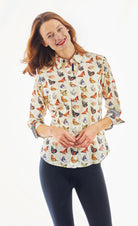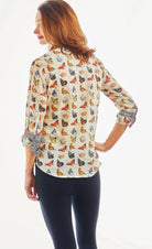 3/4 Sleeve Rome Shirt Neutral Butterflies Voile