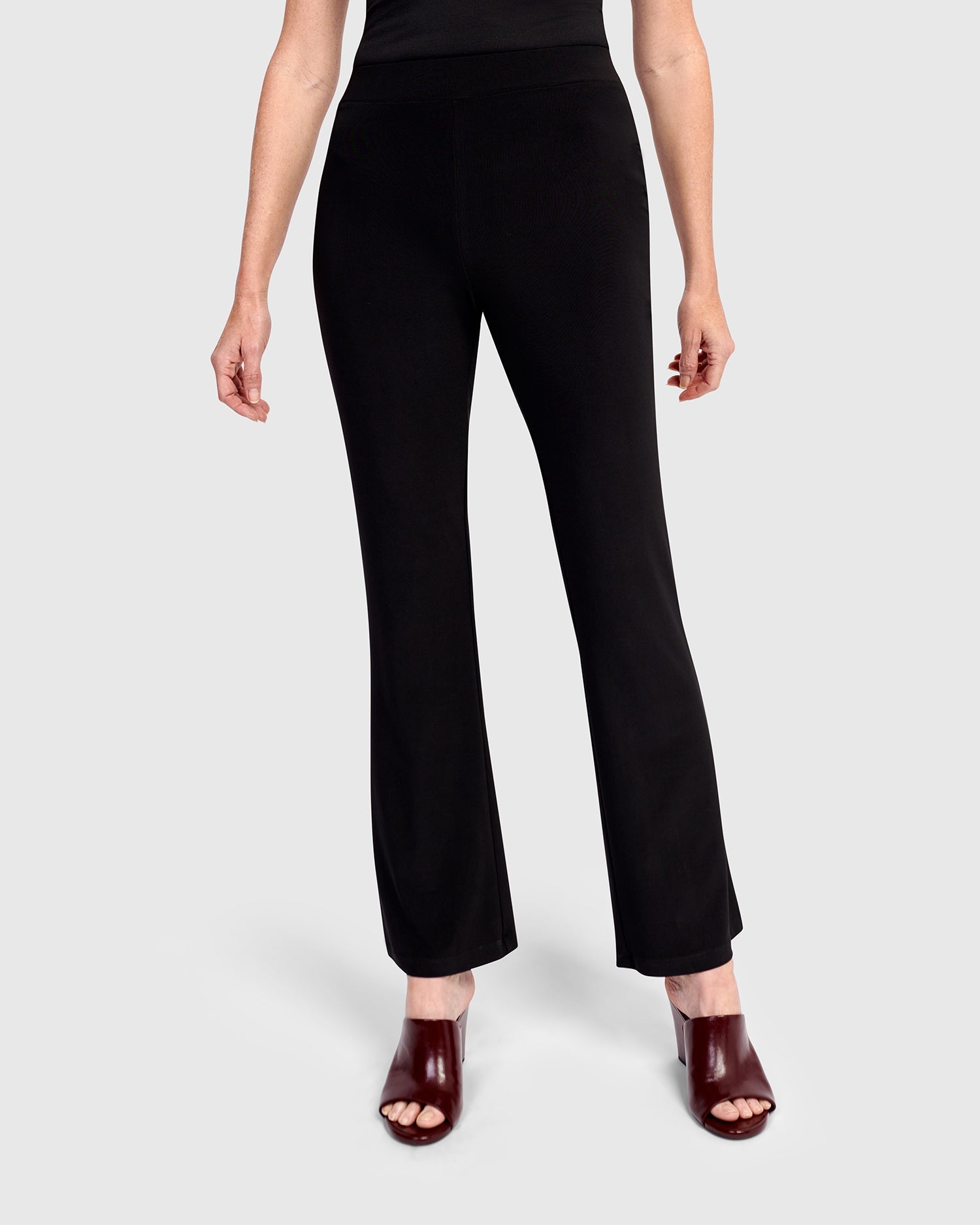 The Absolute Kick Flare is an absolute must-have! Whether they feel more like a pant or legging is up for you to decide…This not-so-basic pant is made in a slinky stretch knit that's not only soft and comfortable, but feels chic too. High-rise, all-around stretch elastic waist, slim fit with kick flare from knee to hem, ankle length.