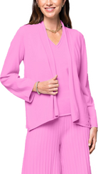 Shawl collar cardigan; Pleated swing back; Made of supple high stretch viscose fabric; Pairs well with the Julia and the Giuliana pants