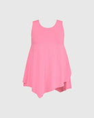 Our wear-everywhere top in an asymmetrical tunic length is a must-have layer, beautiful beneath any jacket or cardigan. Simply indispensable scoop-neck style has a bra-friendly cut at the shoulders and a swingy silhouette with one side slit at the hem. This pretty pink top will brighten so many looks.