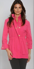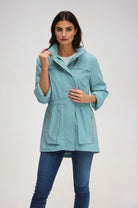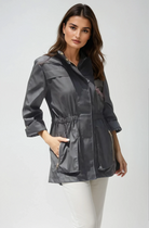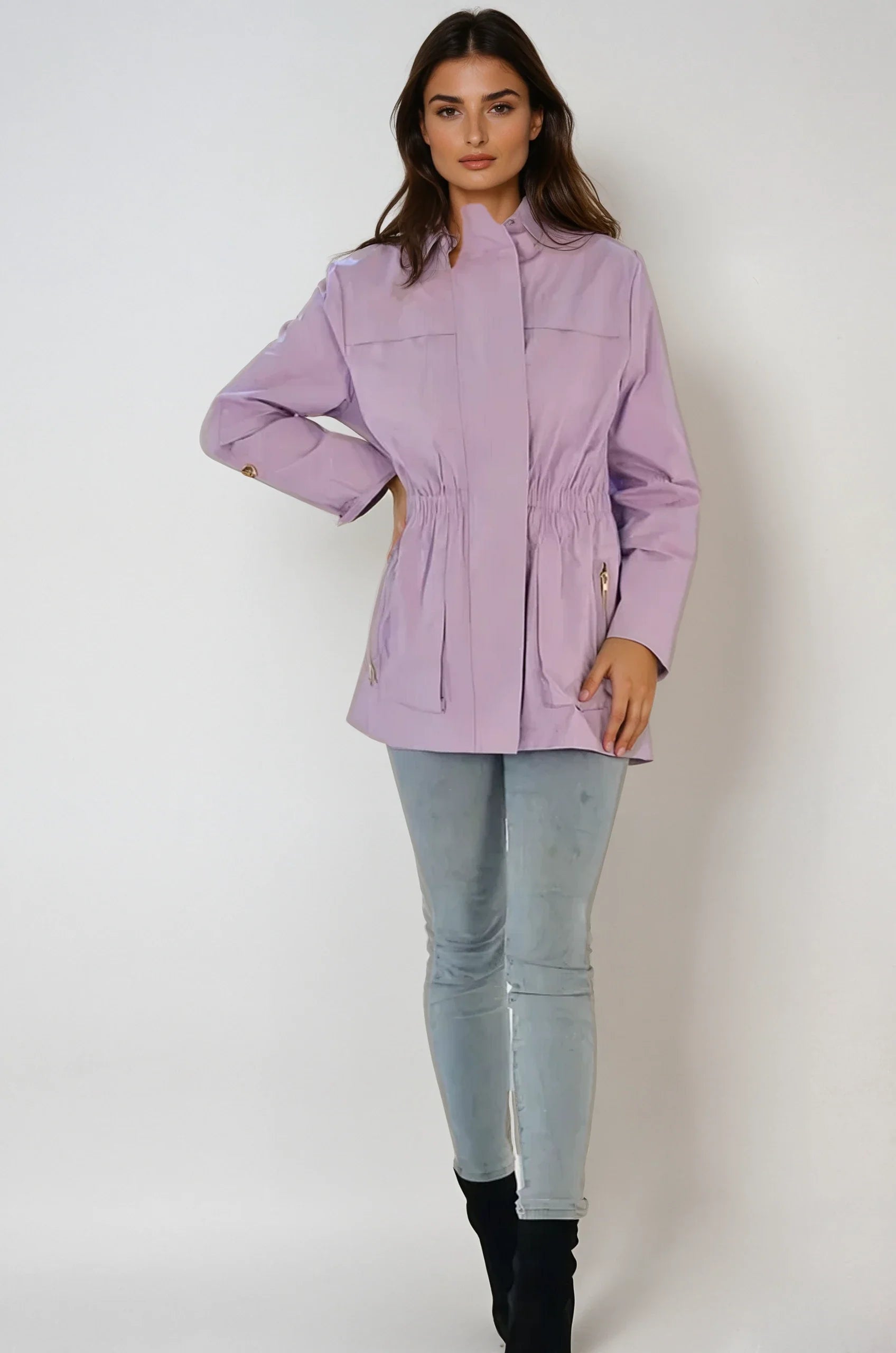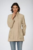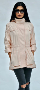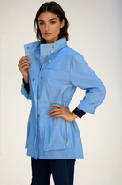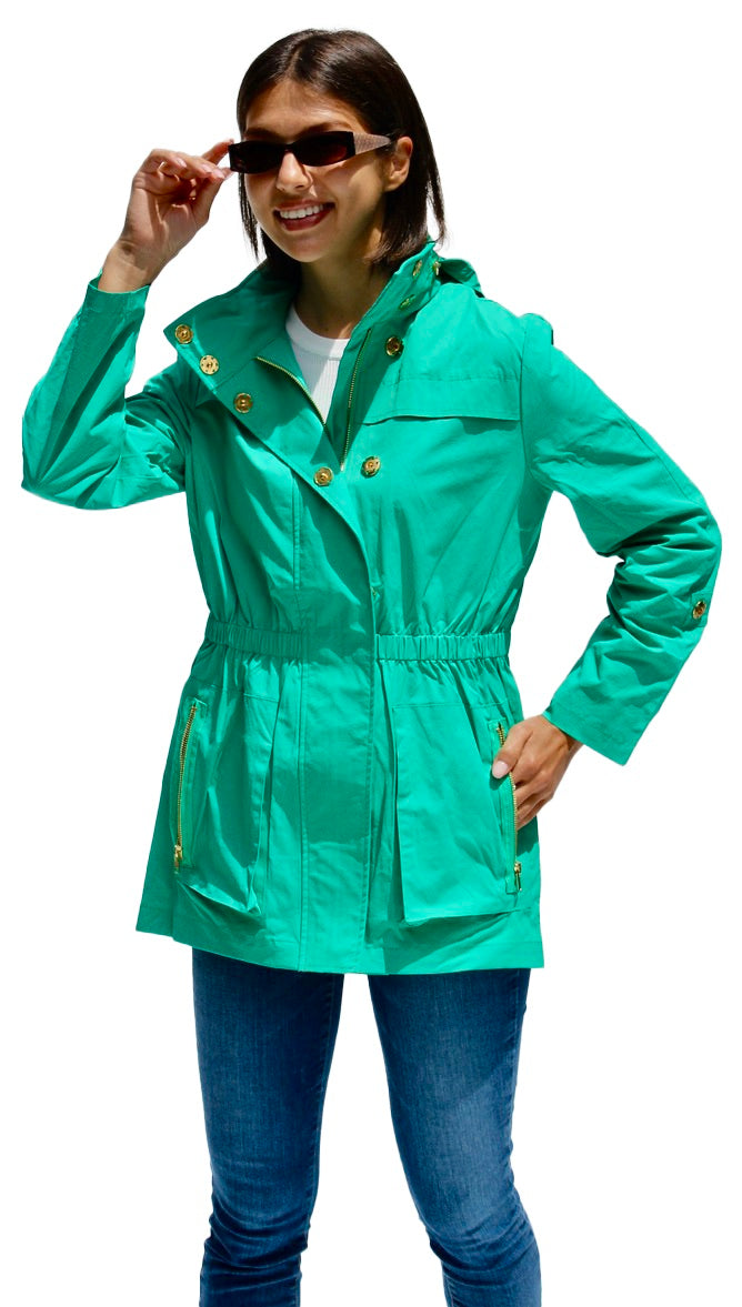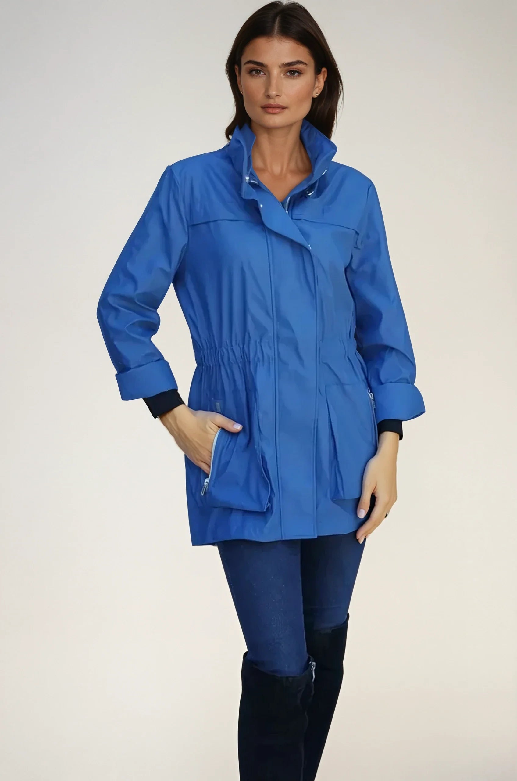 style ANNA - new fabric developed by Ciao Milano. Soft durable flowing fabric that is not only 100% water proof but extremely rich looking. Looks like a million dollars. 100% polly. A more shinny look than the Tess fabric. Same style, hardware, specs and fit with zip in pouch hood as the famous TESS style.