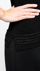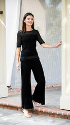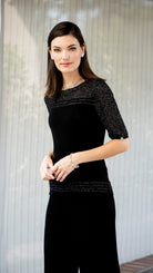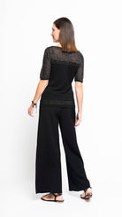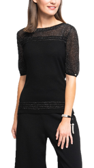 Bella Short Sleeved Top with See-Through Detail on Shoulders and Sleeves; Black/ Black Shimmer