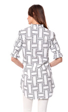 Big Shirt Tunic with Ruffle Sleeves White Geo