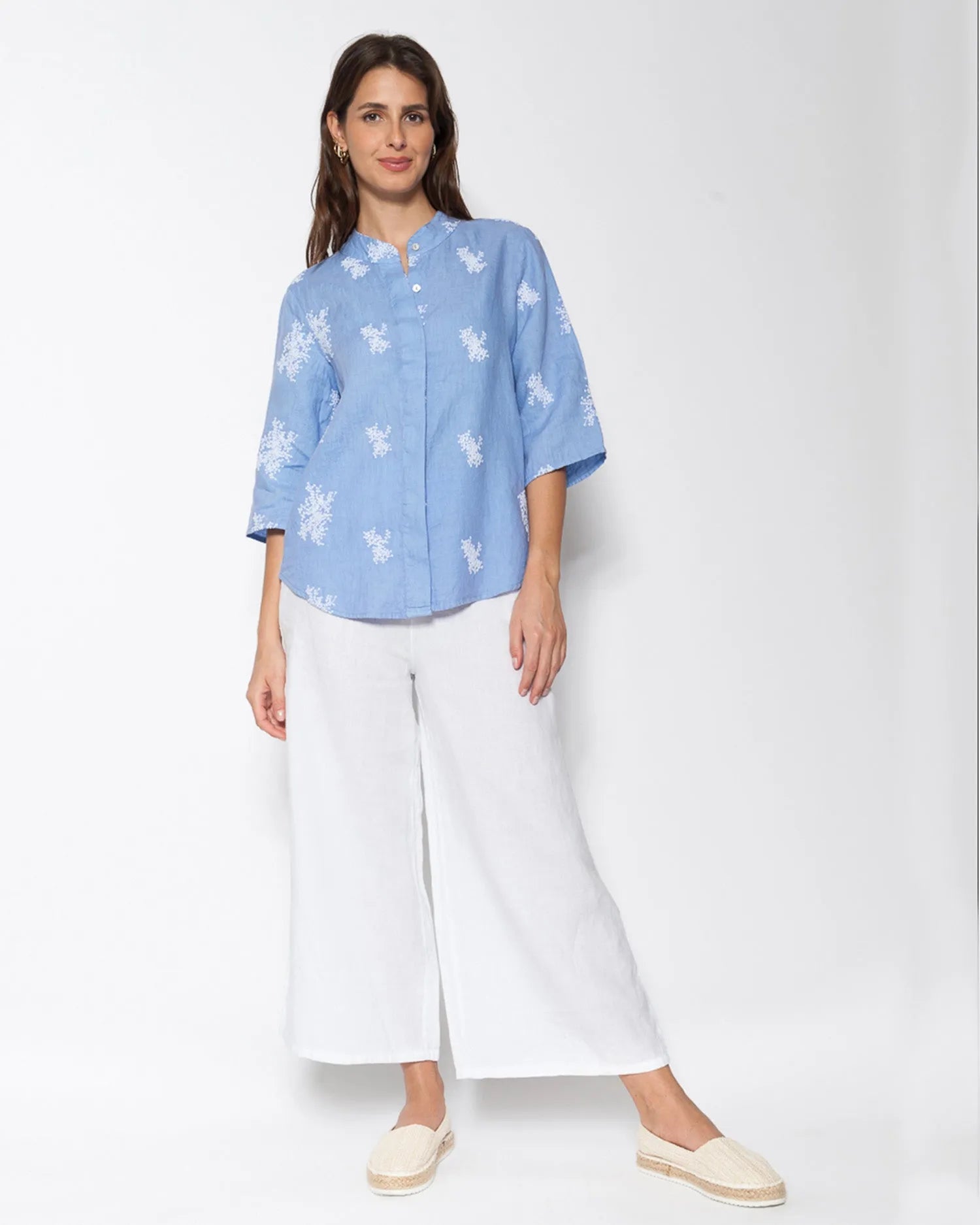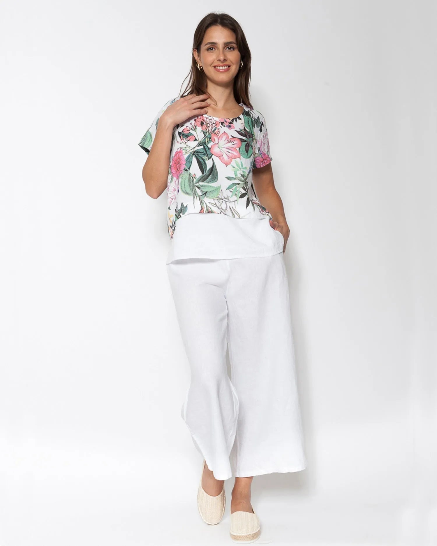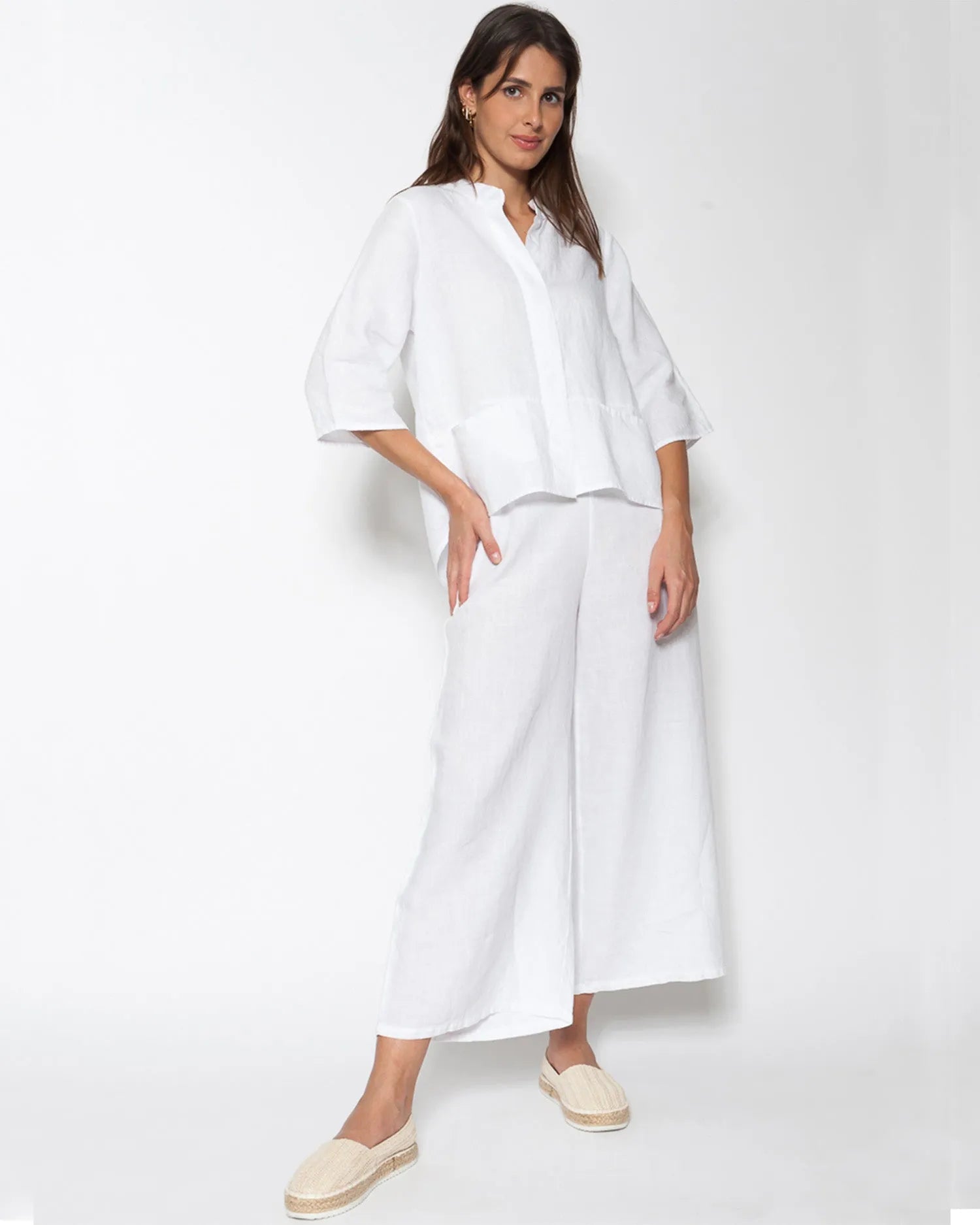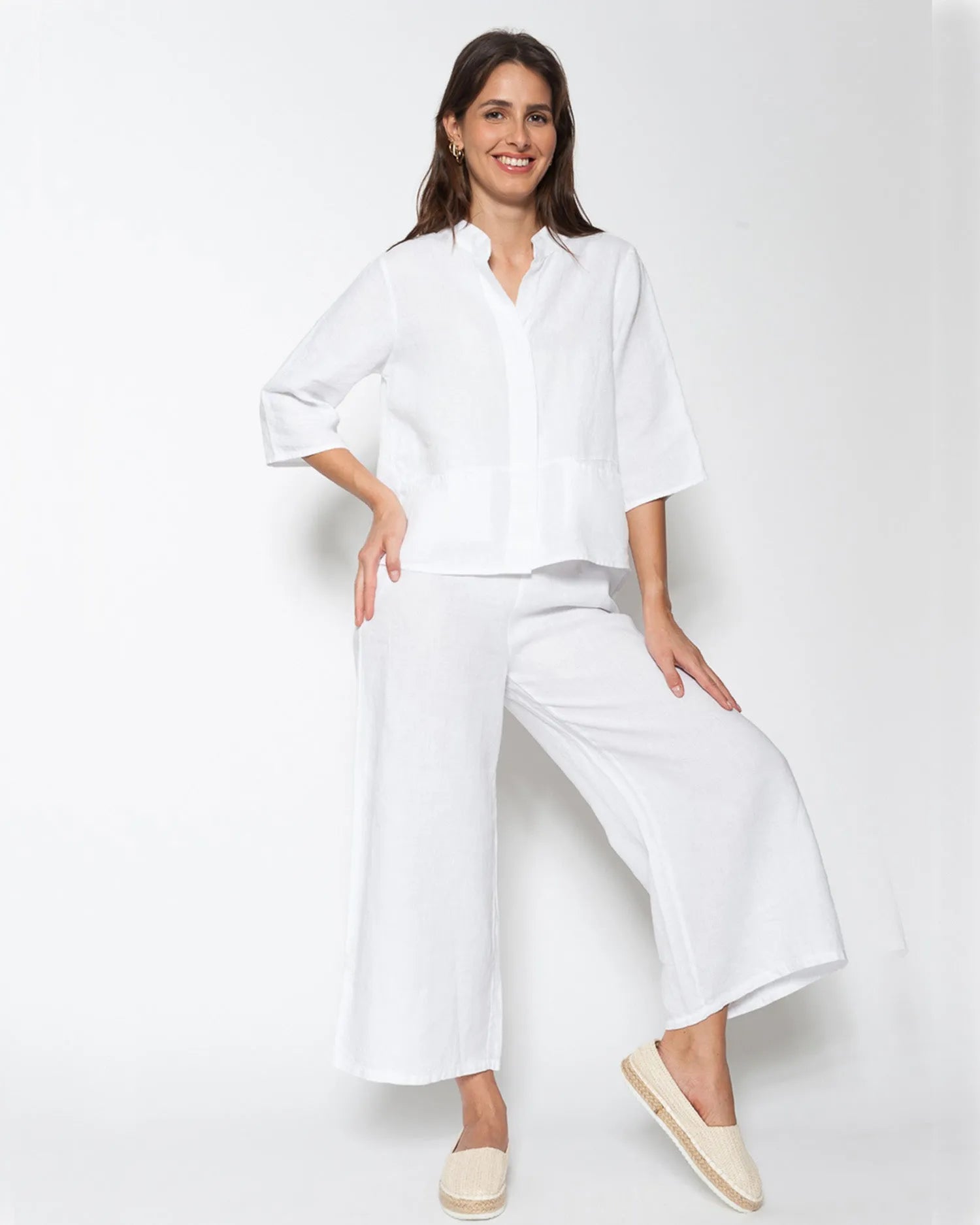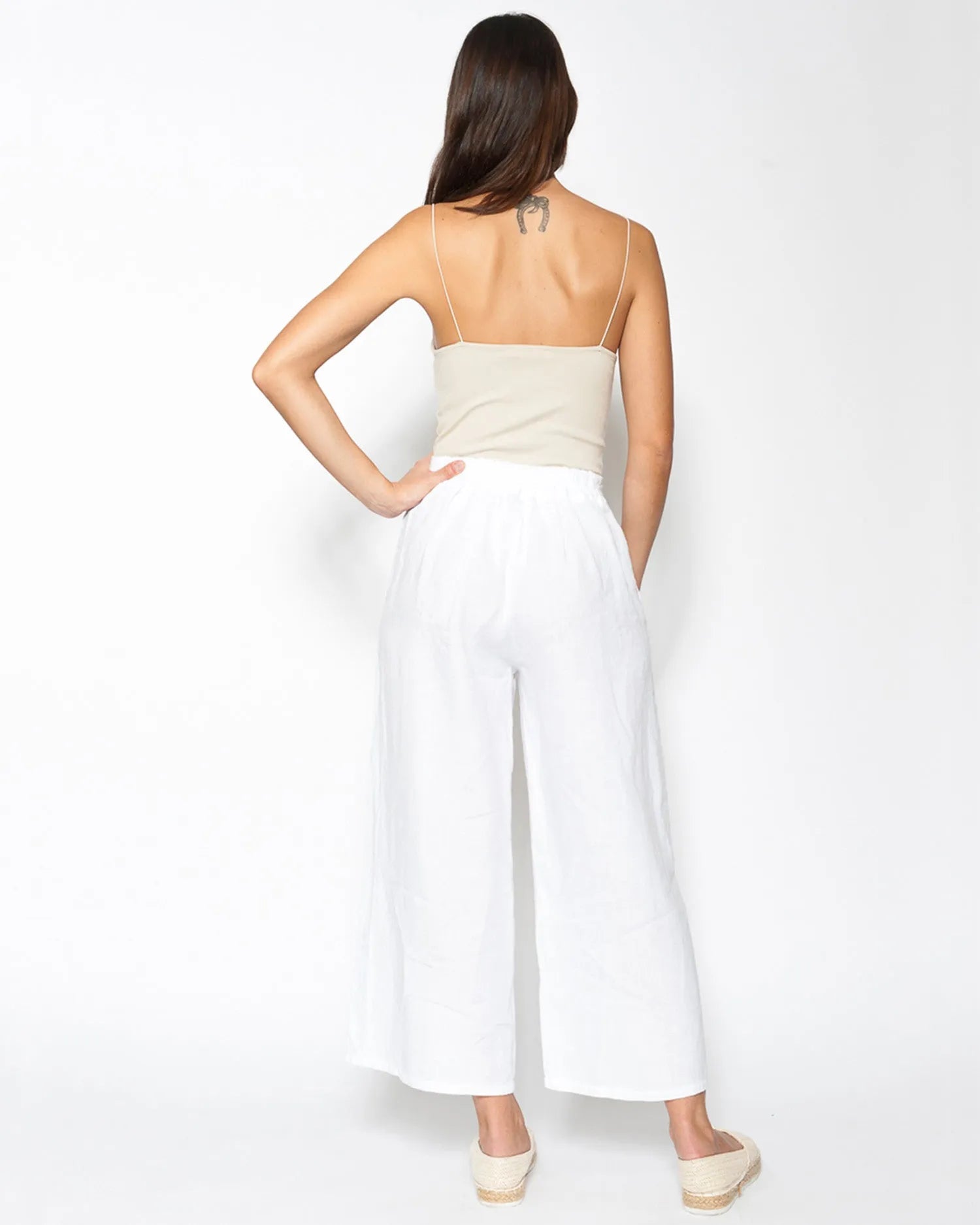 These breezy 100% linen pants have an extra high-rise fit, wide relaxed straight leg that hits at the ankle, flat front waistband with elastic back, and side seam pockets. The ultimate summer pant to keep in your closet for years to come.