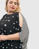 Boxy Dolman Cutout Top, Squares