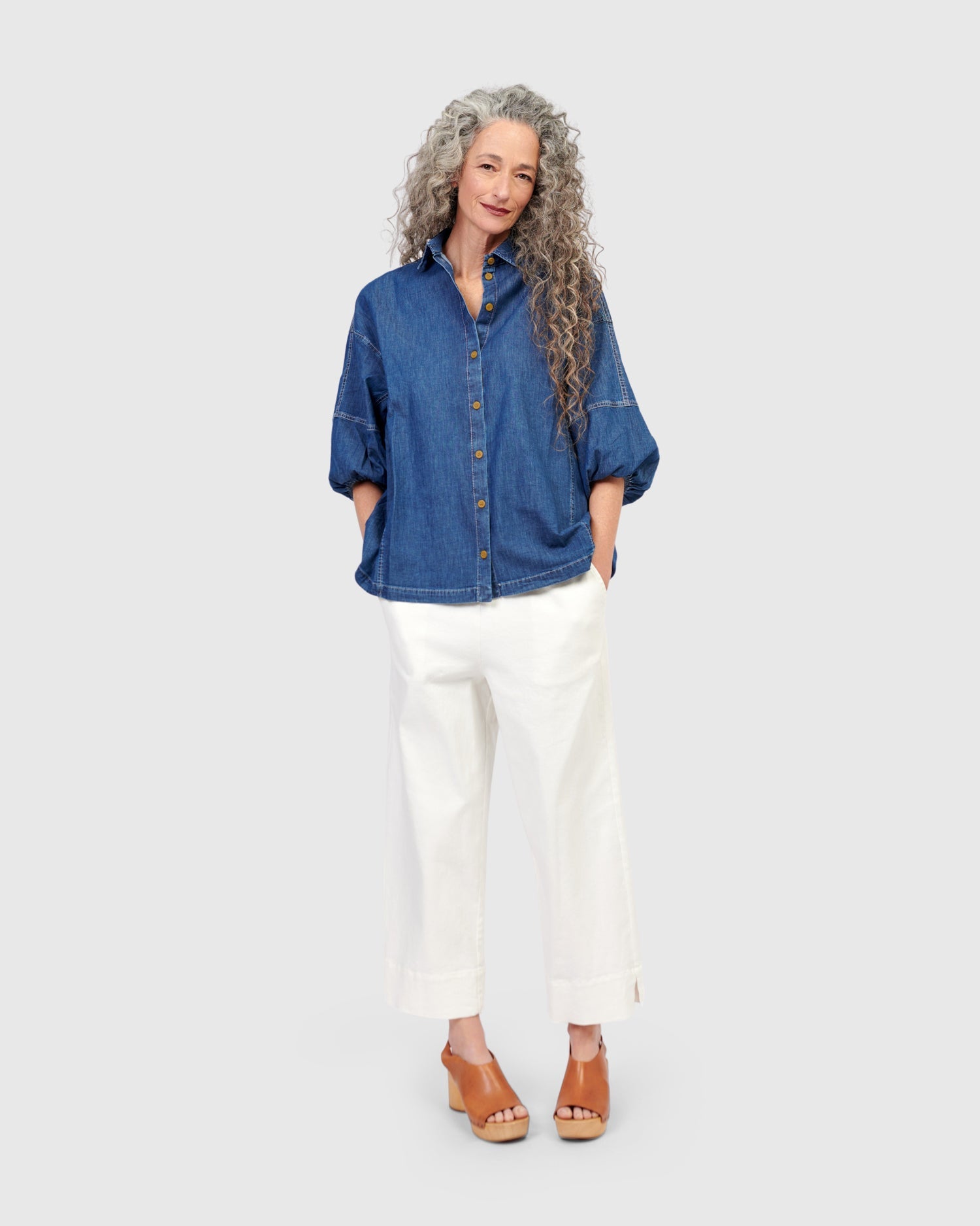 - Lightweight woven denim