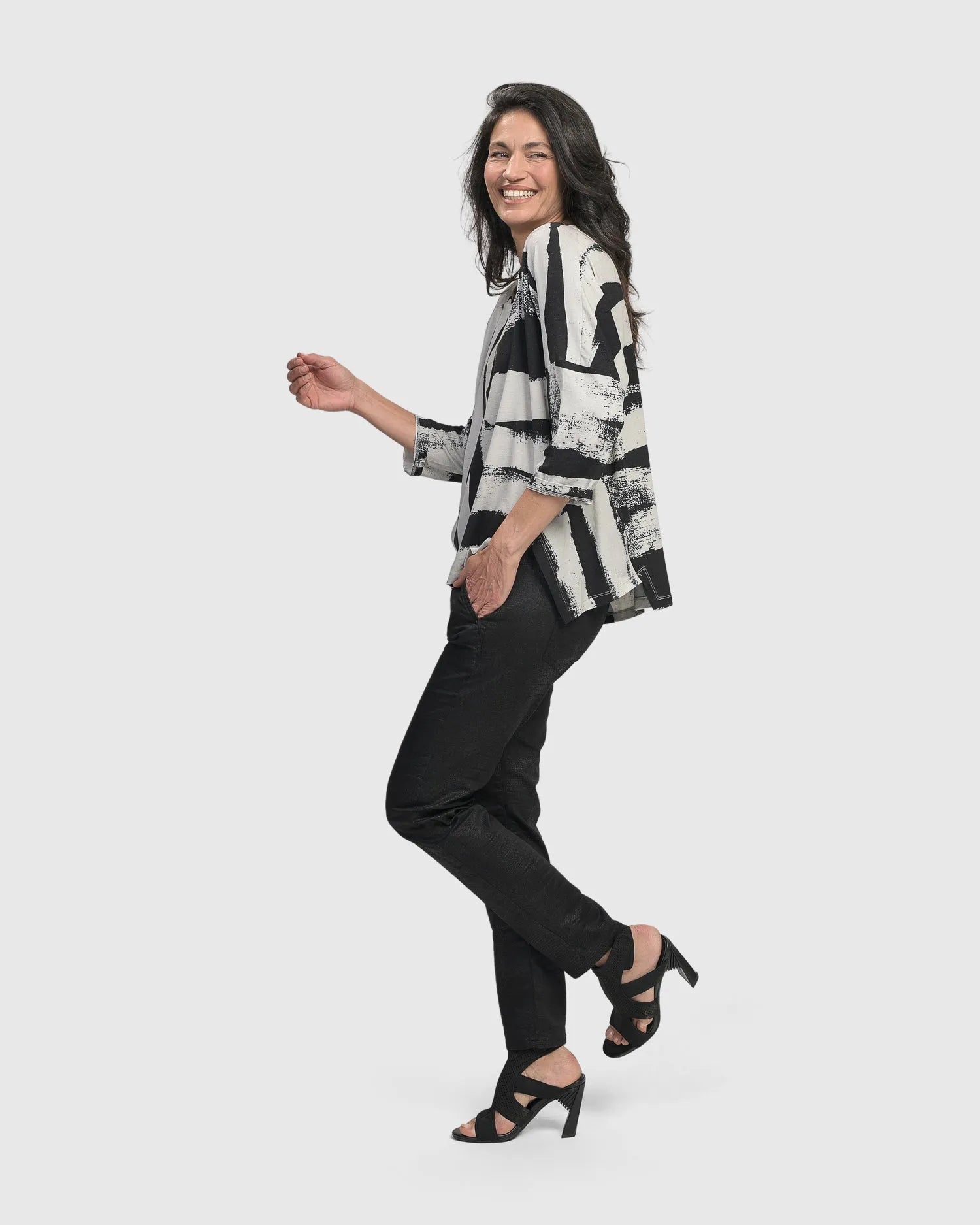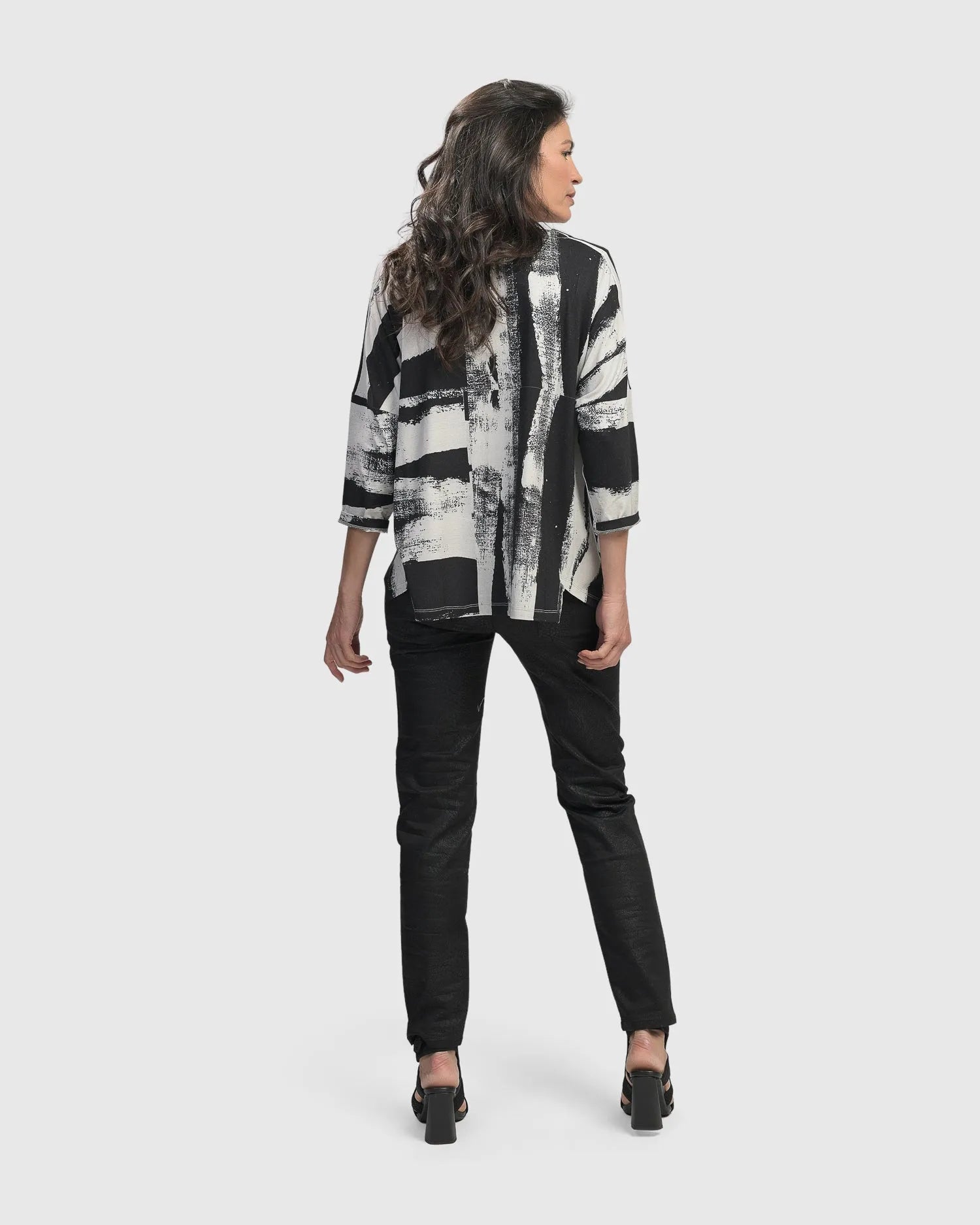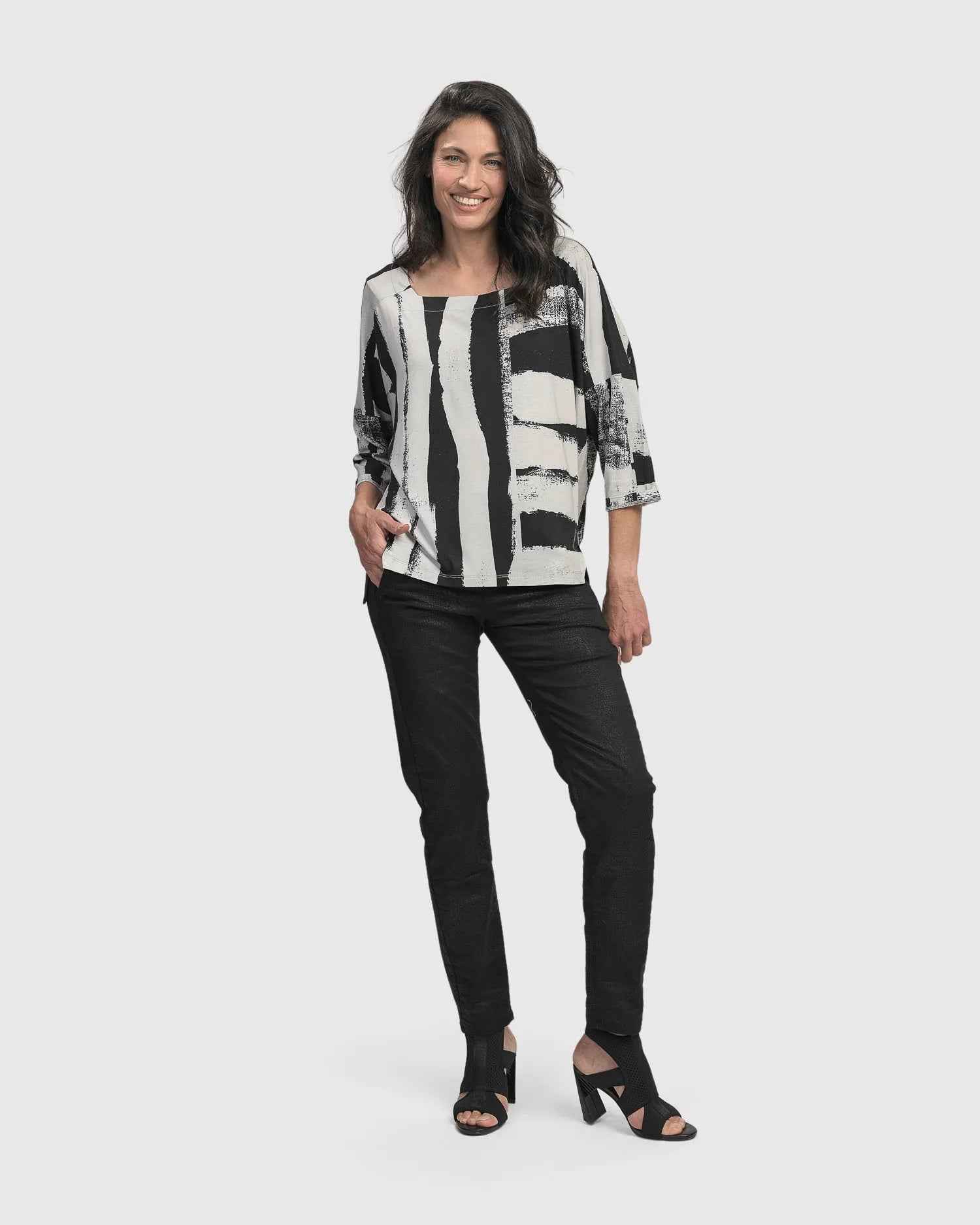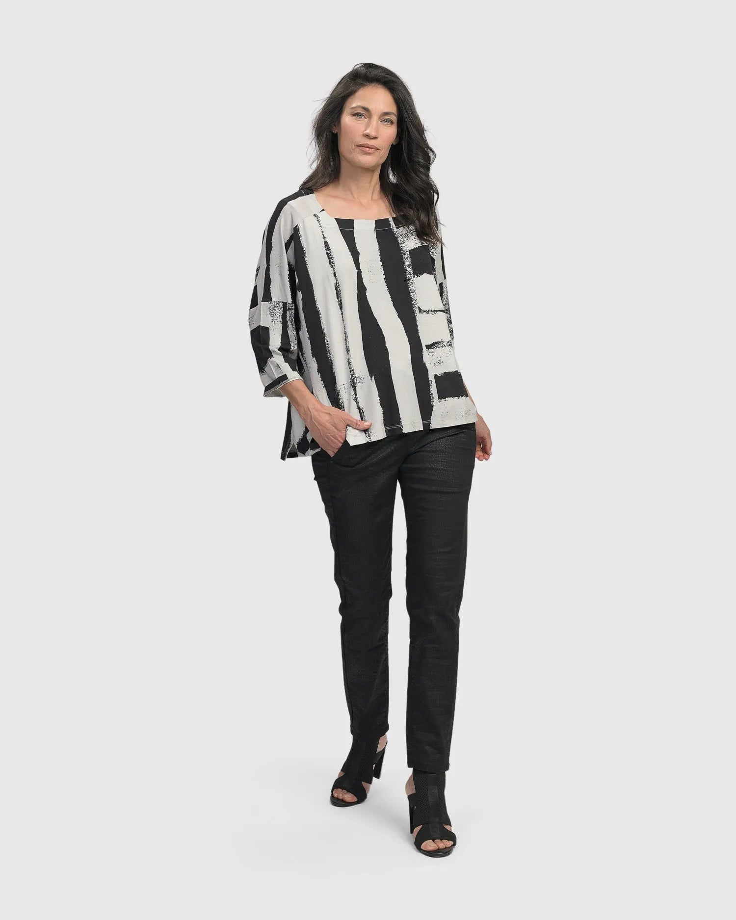 You are poised for excellence in our relaxed pullover style with square neckline, 3/4 drop sleeves, loose waist and wide hemline. The metropolitan-attitude stripes are guaranteed to turn heads.
