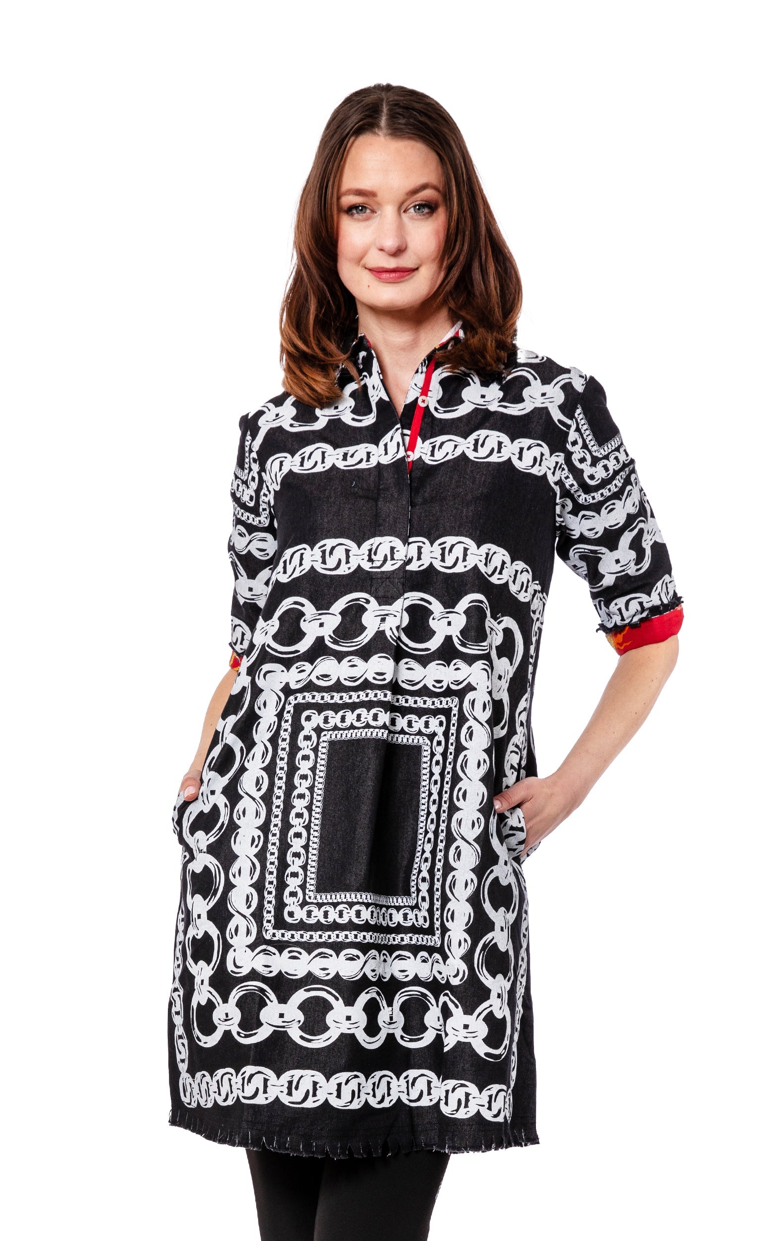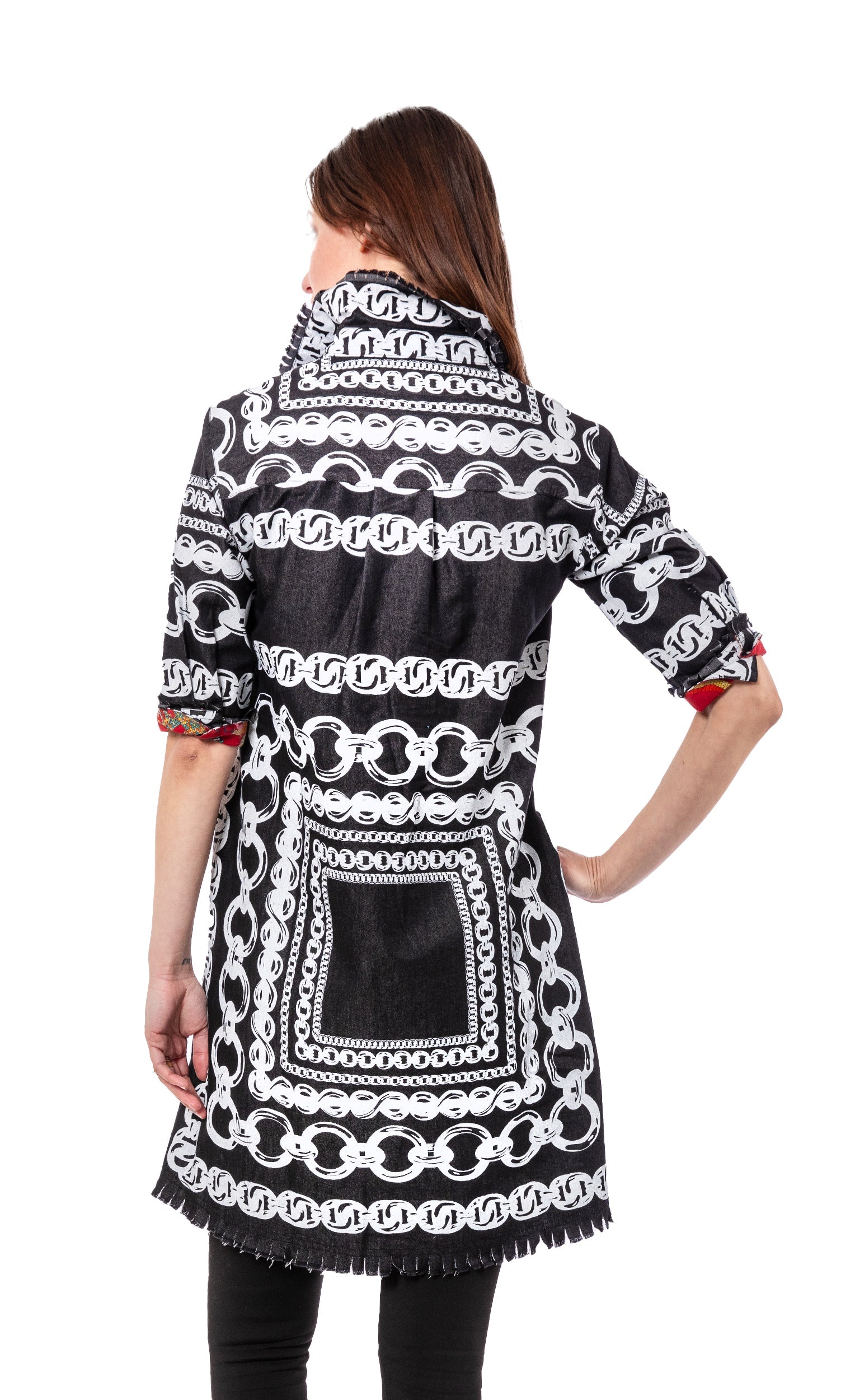 The Chatham Black Denim with White Link Pattern offers a sleek and sophisticated look, combining timeless black denim with a subtle white link design. Crafted for those who appreciate refined details, this piece adds a polished edge to your everyday wardrobe while maintaining comfort and durability.