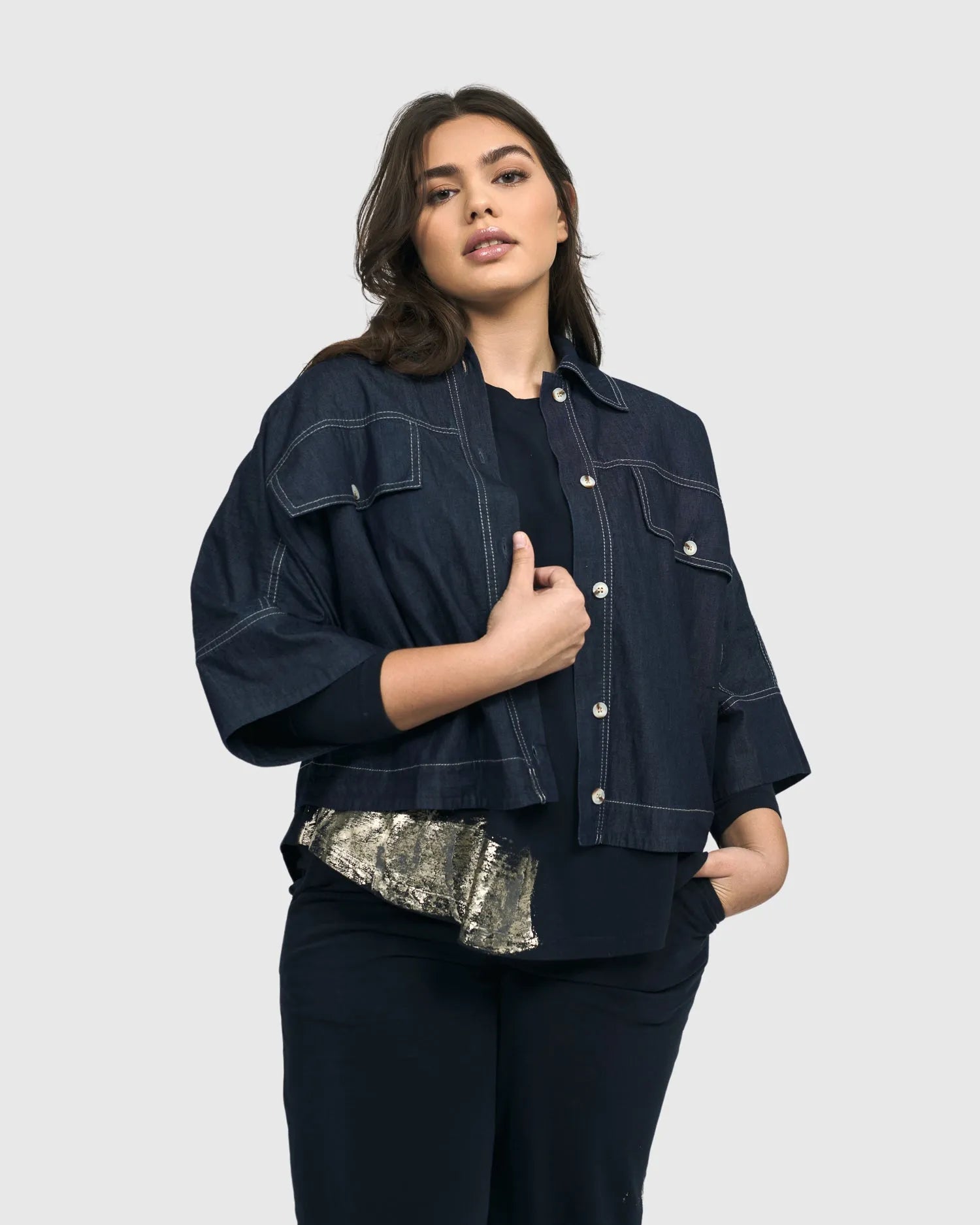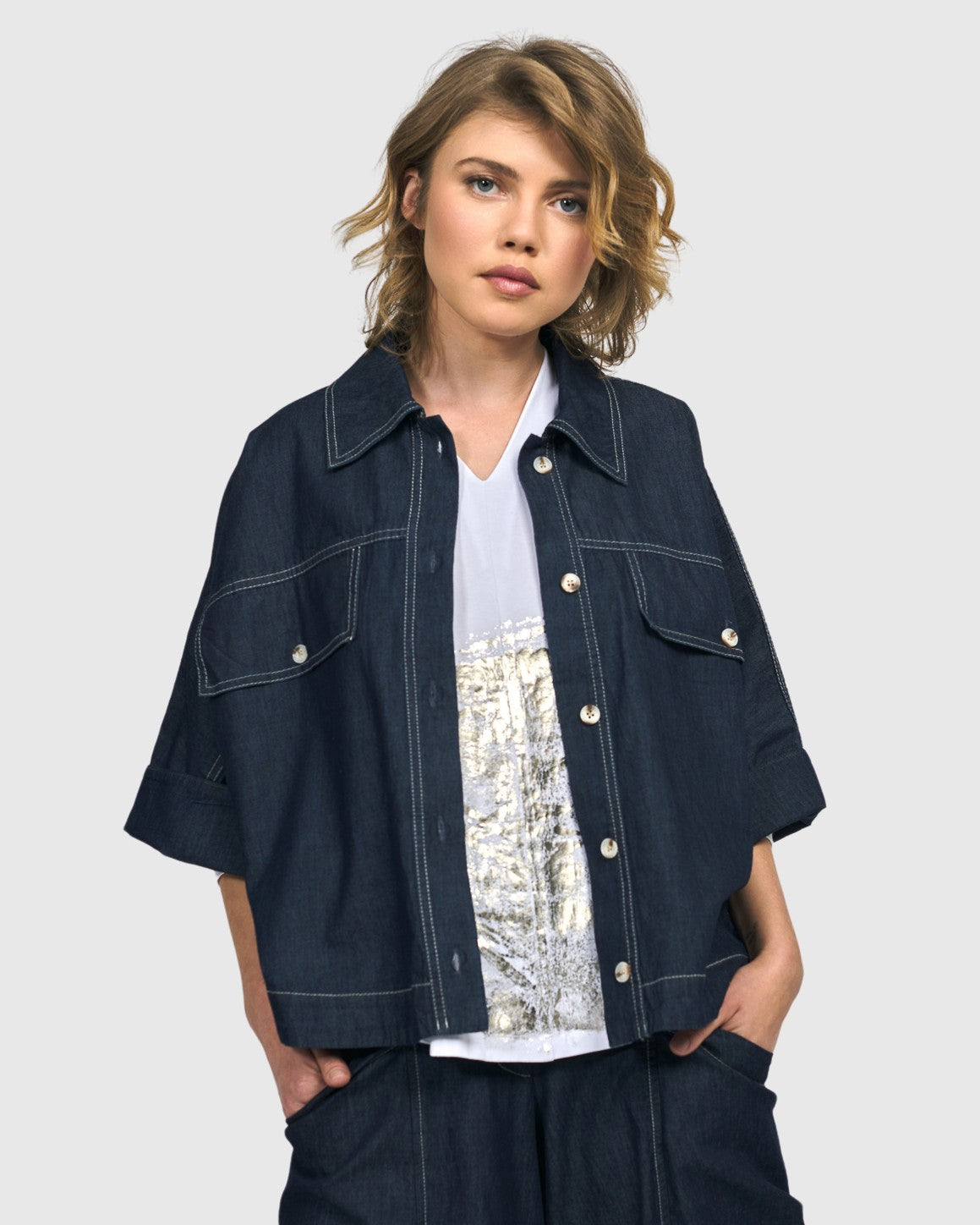 Dallas Cropped Shirt Jacket, Denim
