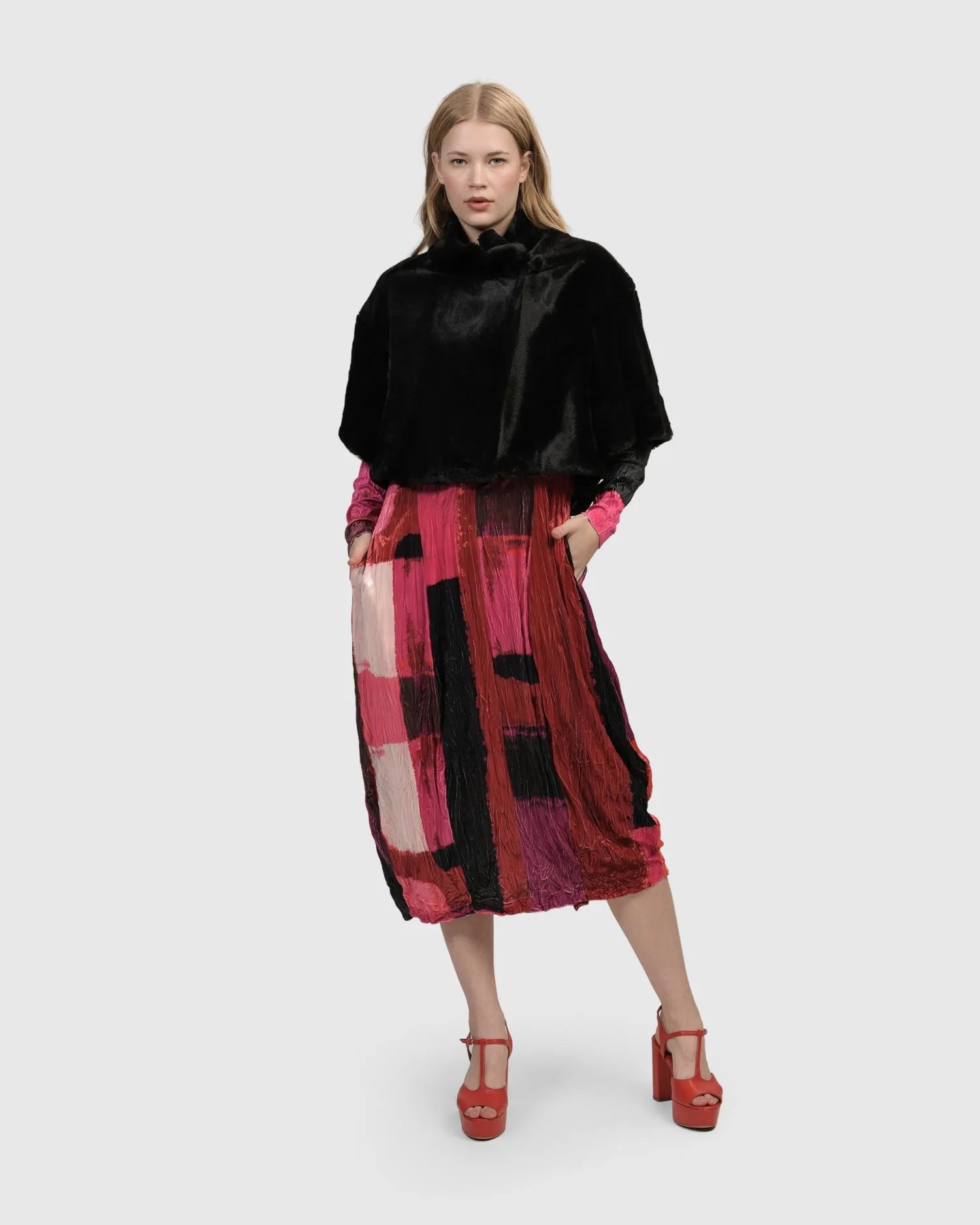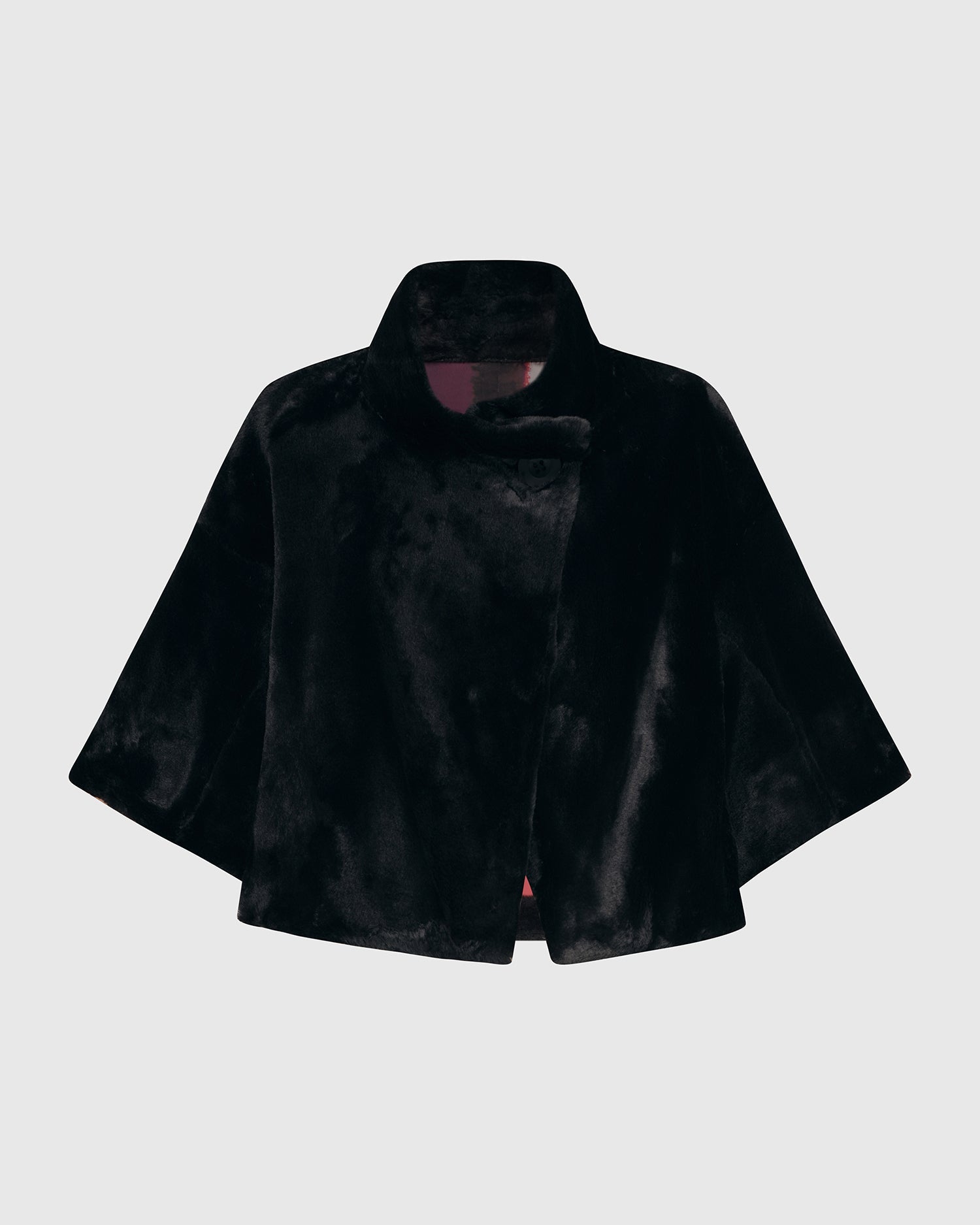 Spectacular, stunning, wow! These are some of the accolades you can expect to hear when you walk into the room wearing the fluffy Daphne Darling Jacket. Features a mandarin style collar with a single button closure at the neck, three-quarter sleeves, silky lining, a smooth pocketless A line silhouette and a cropped length for dramatic effect. Think of this as the cherry on top of whatever gorgeous ensemble you piece together.