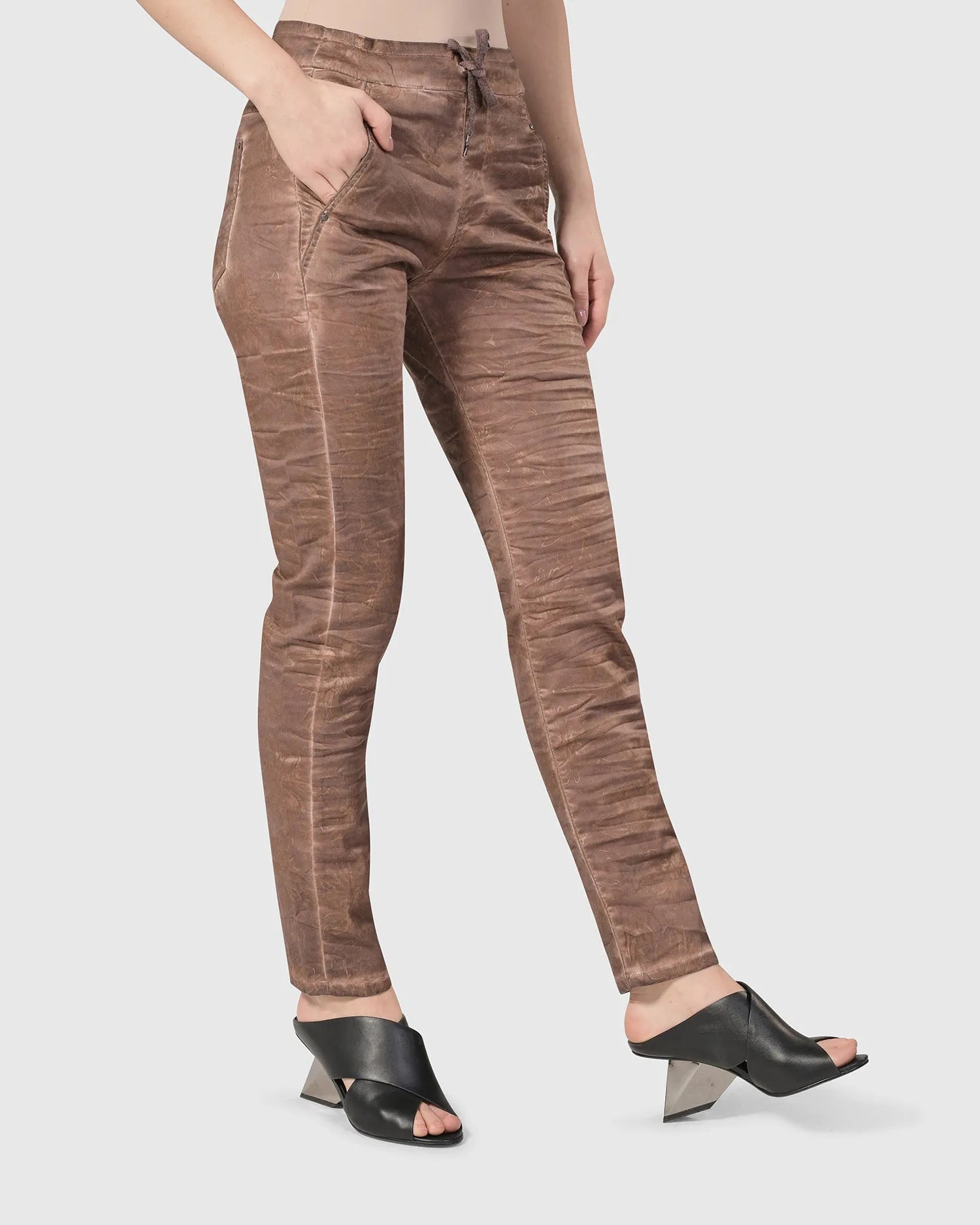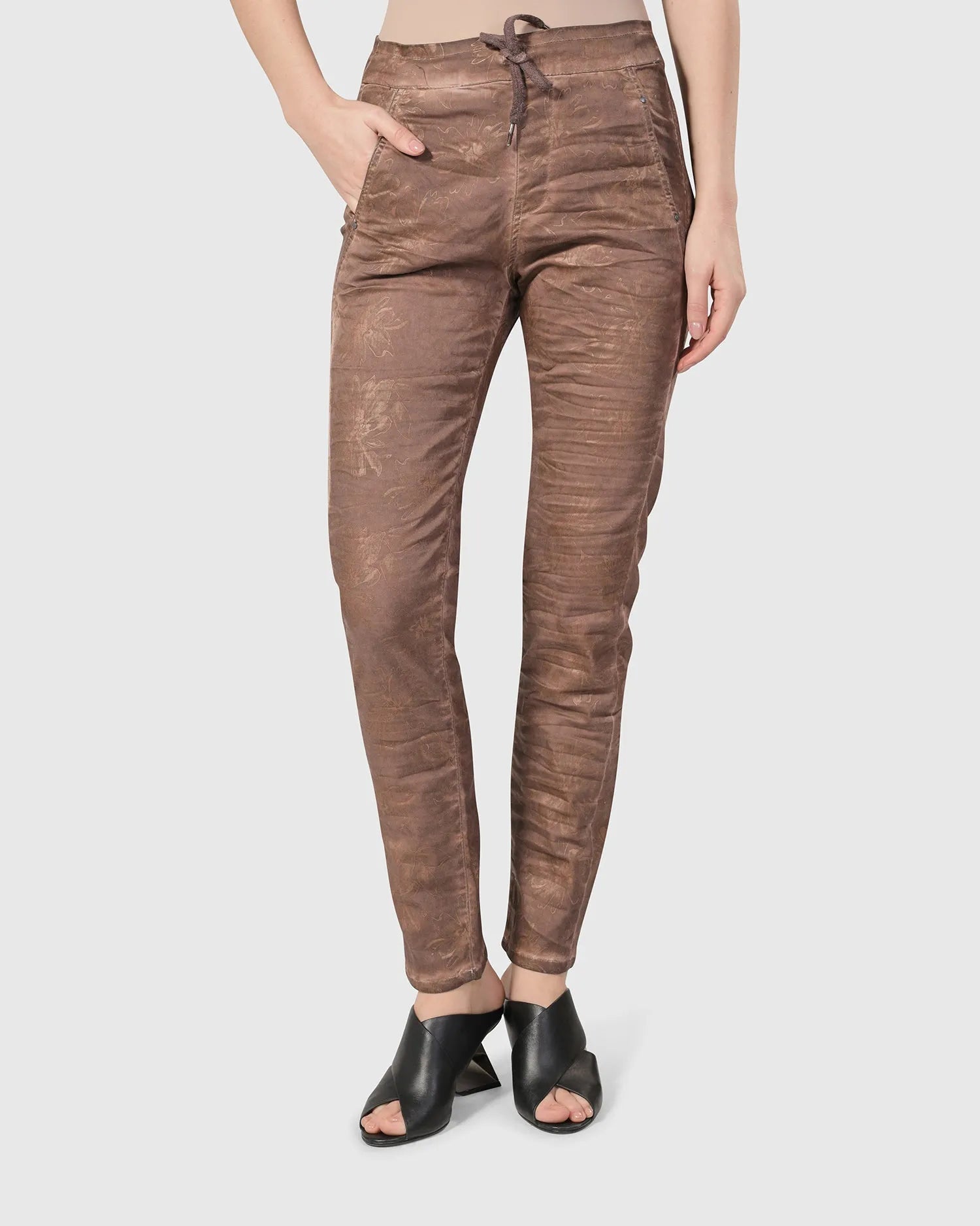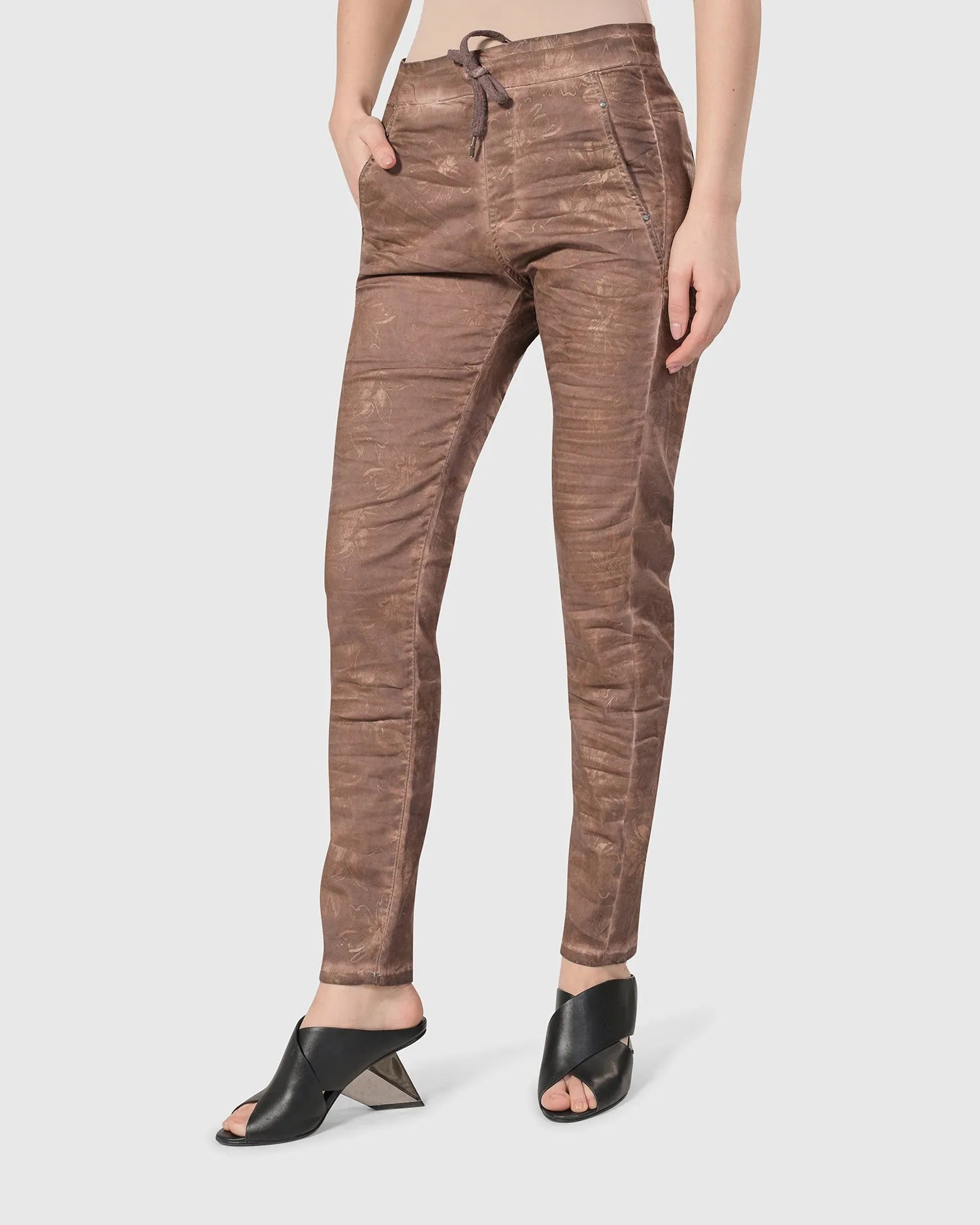 A softly distressed finish updates our cult favorite in soft, stretch cotton for an amazing fit! A universally flattering mid-rise waist and a more relaxed taper than skin-tight skinny jeans. Adjustable drawstring stretch waist, mock fly, angled side pockets, yoked back with patch pockets, and rivet trim. Voted best jeans for women over 50!