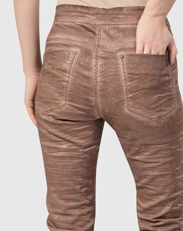 Distressed Iconic Stretch Jeans, Brown Wash
