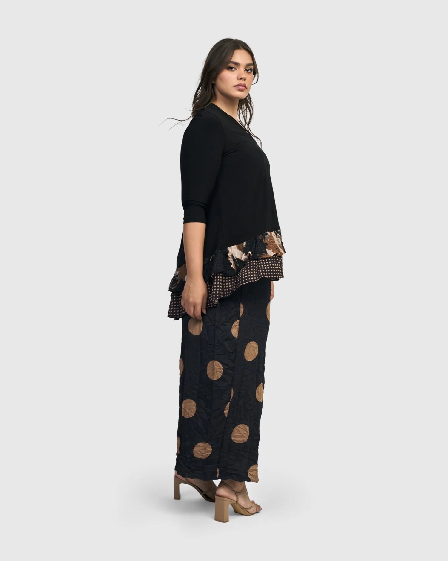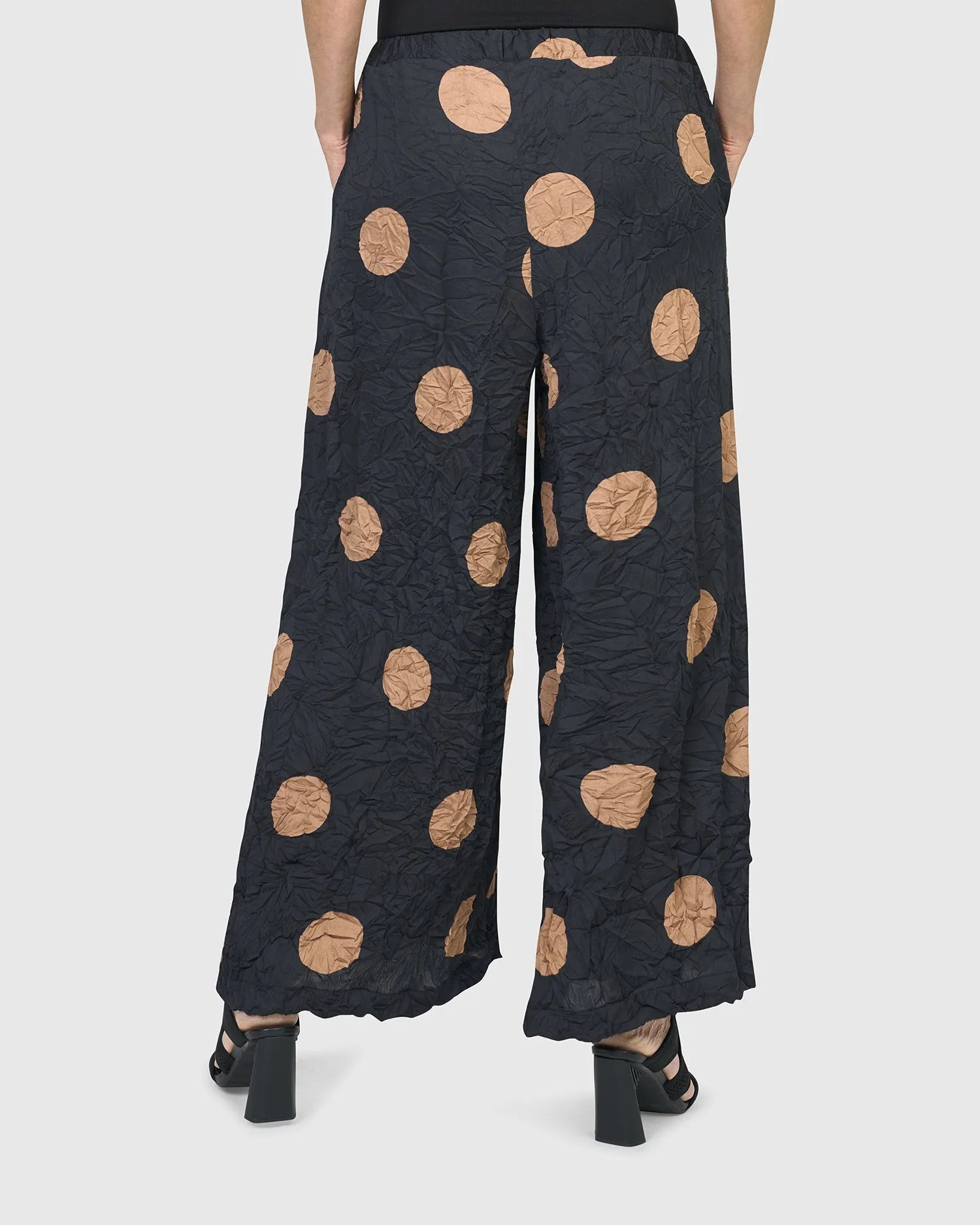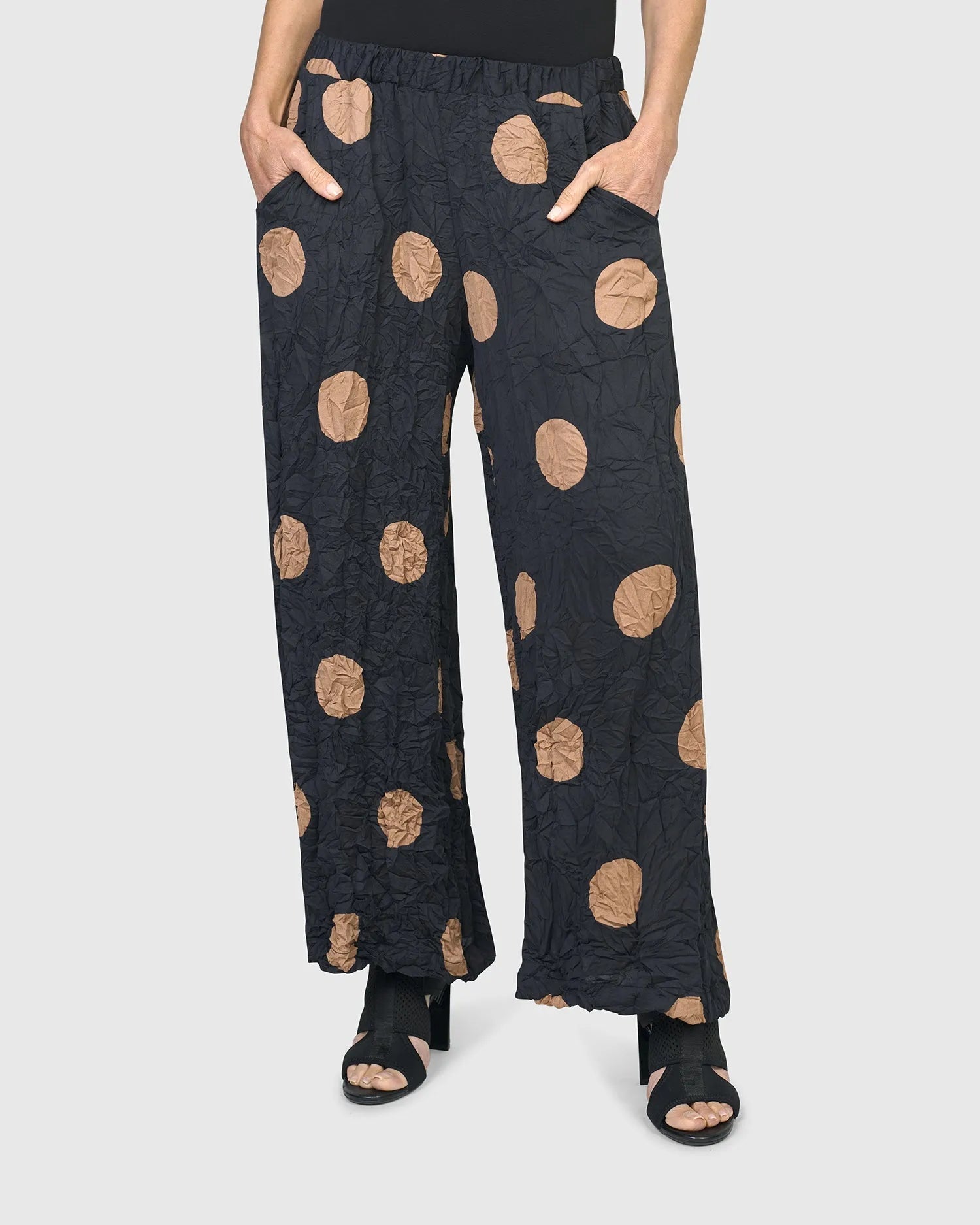 These full length high-waisted pants have a wide, straight leg, all-around elastic waist and side pockets. The perfectly crinkled satin-feel texture makes spending any travel or long days out-and-about easy and stress free – never fear looking unkempt or undone in effortless crinkle fabric that always sits elegantly.