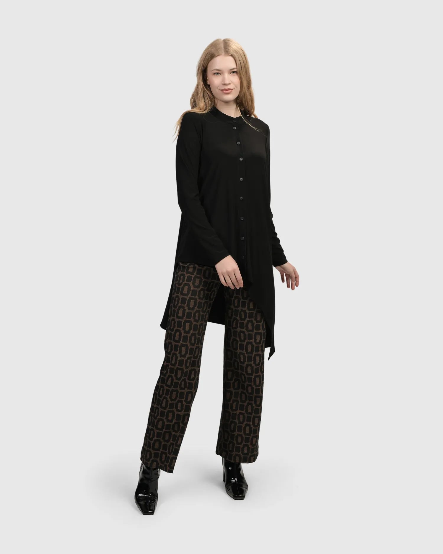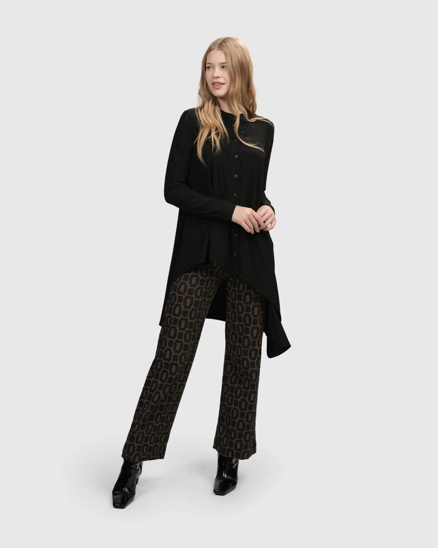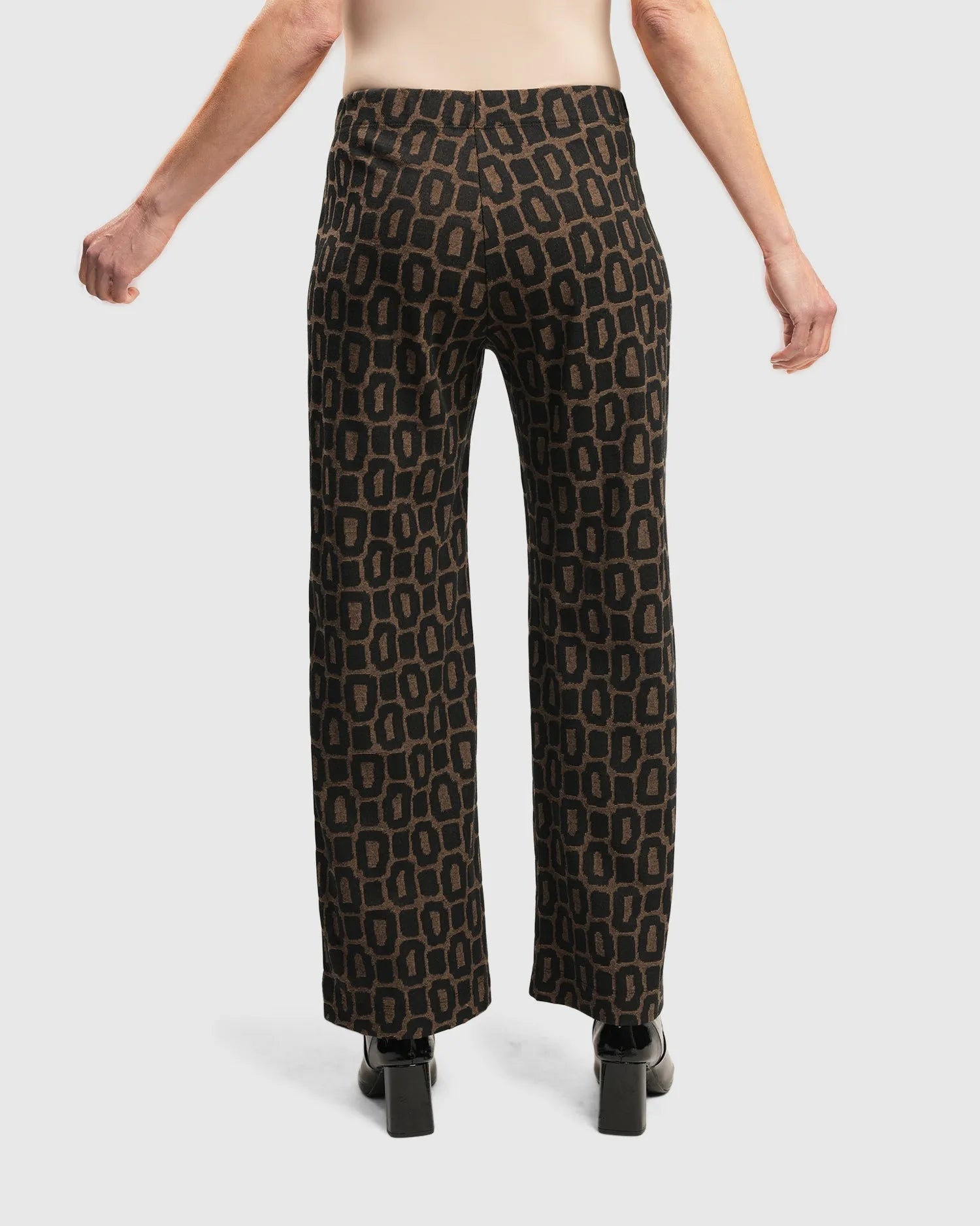 Looking fine and dressed to the nines. That's the energy these Dynamite Days Flare Pants give. Pull on, elastic waist, slim fit woven pants with a flared bootleg hem are stylish. Printed with a retro geometric pattern reminiscent of 70s glam, these pants offer funky flair.
