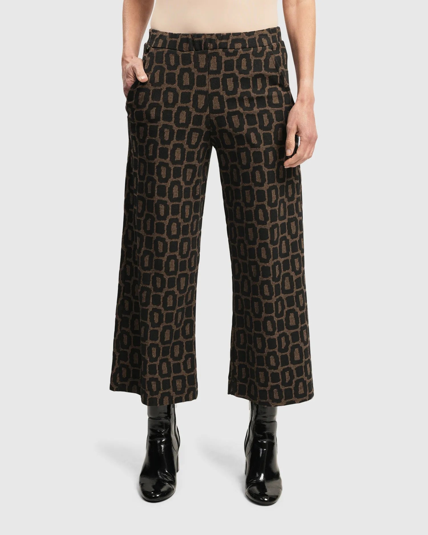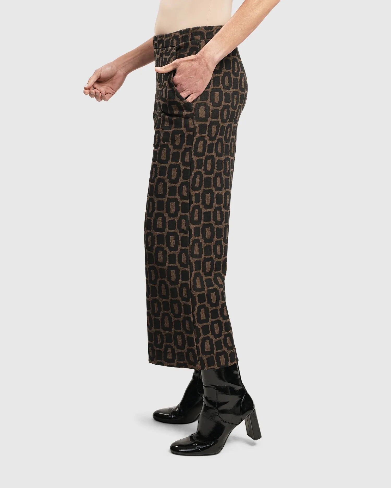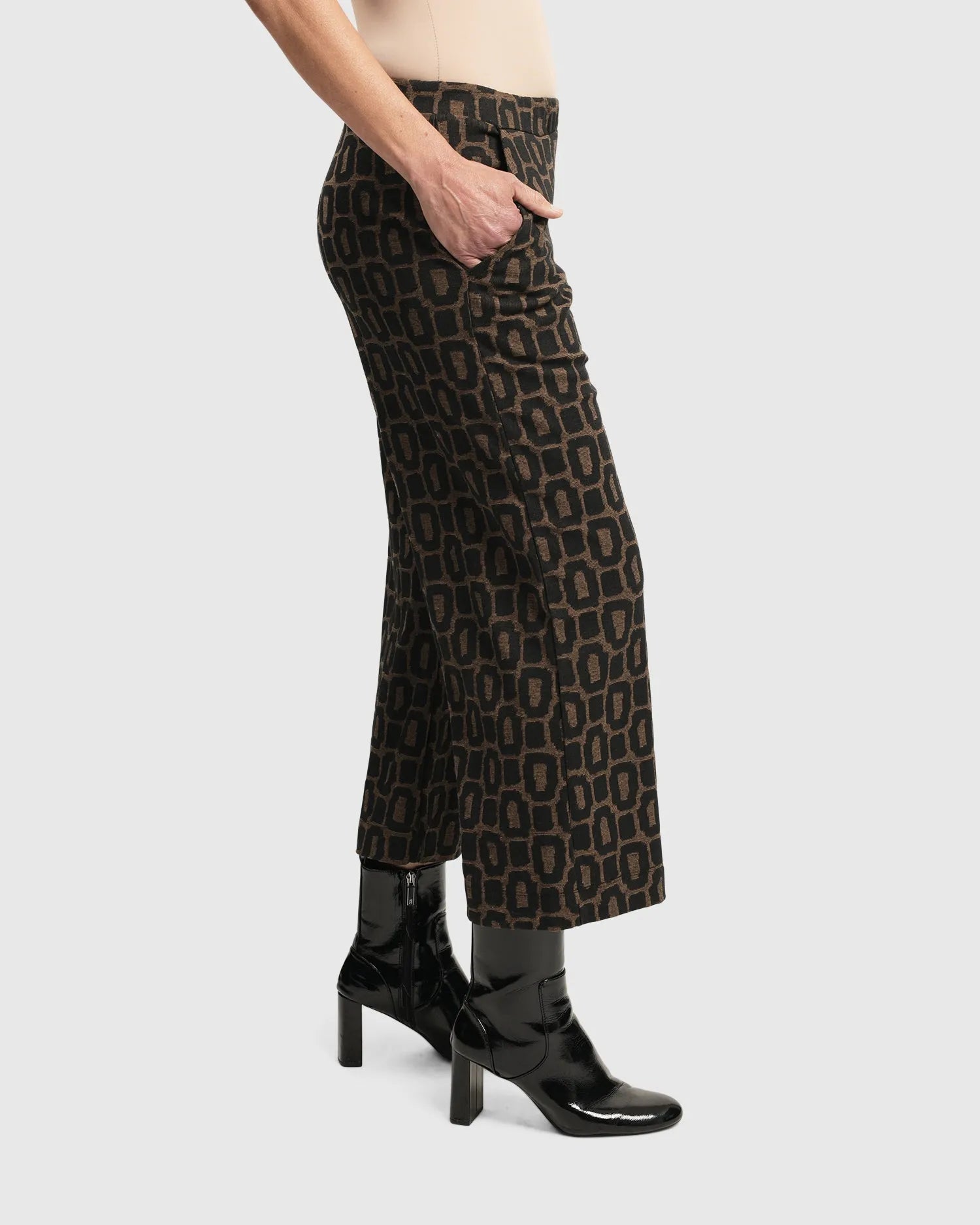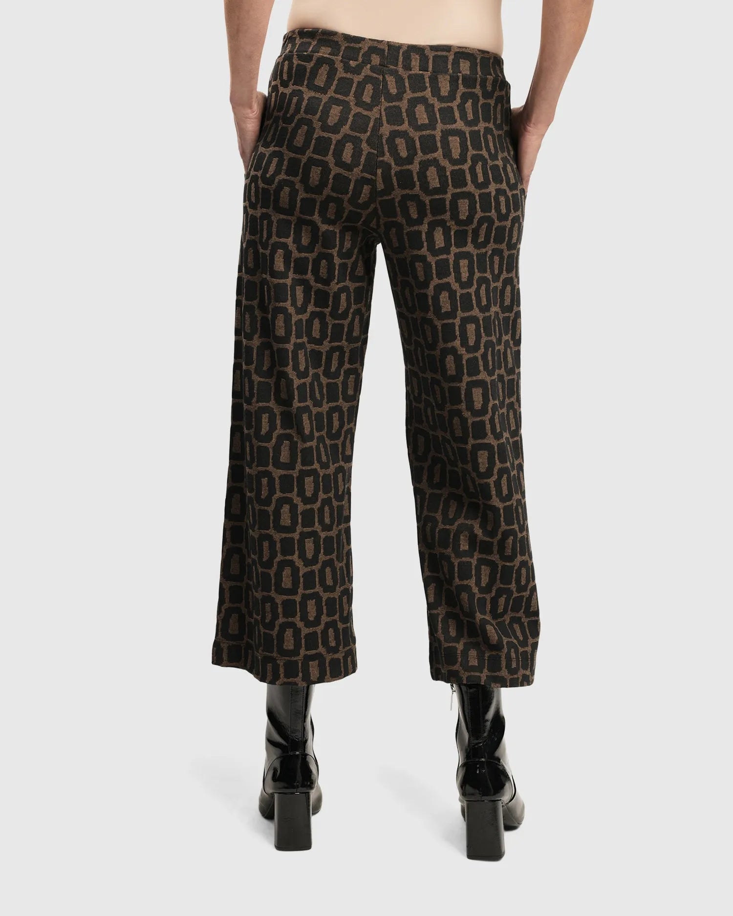 Our cropped, woven Dynamite Days Straight Leg Pants with side pockets are what's up. Printed with a retro geometric pattern reminiscent of 70s glam, these pants are ready to hustle. Spice up your workday, your brunch date or your late night shenanigans with this classic style with funky flair.