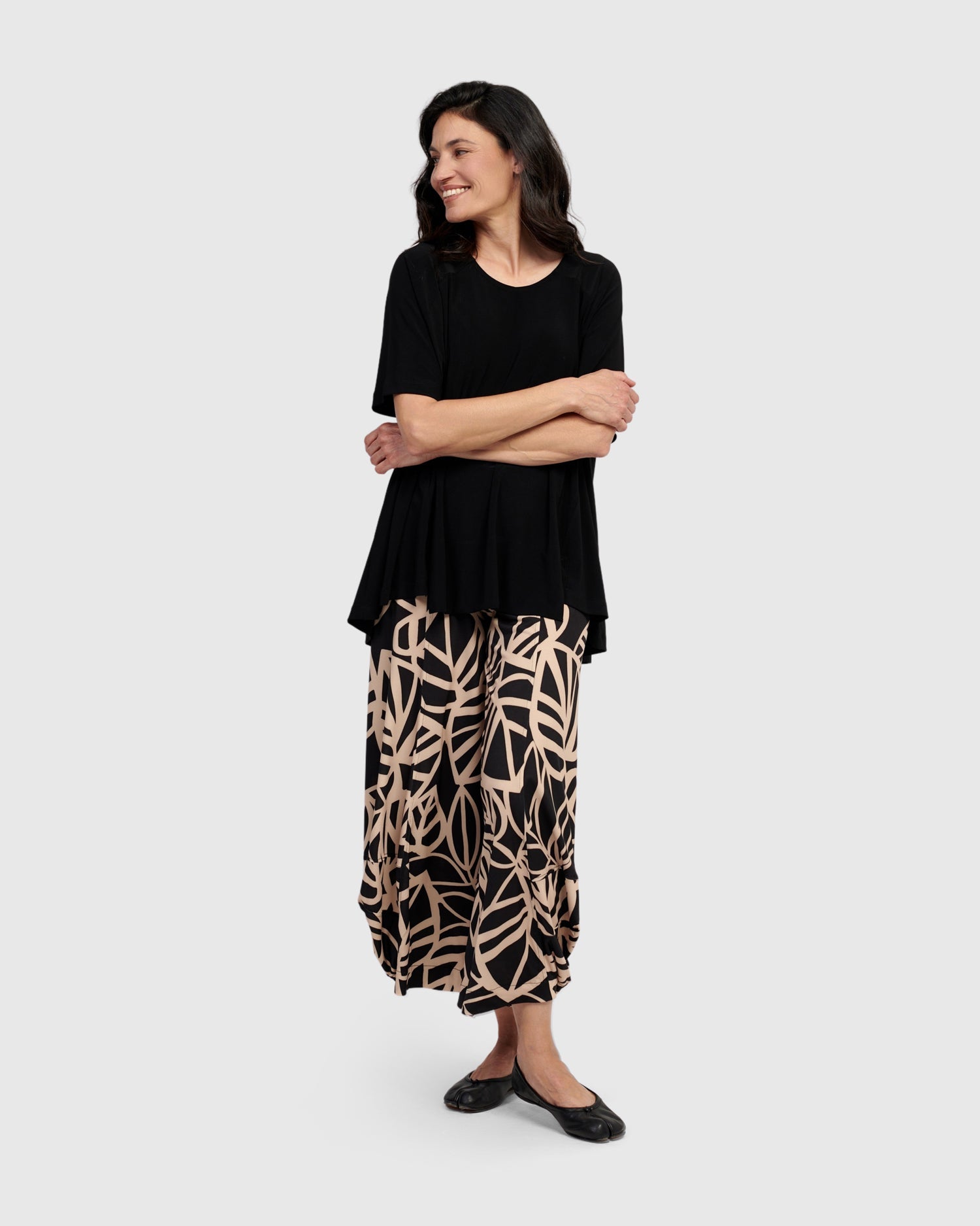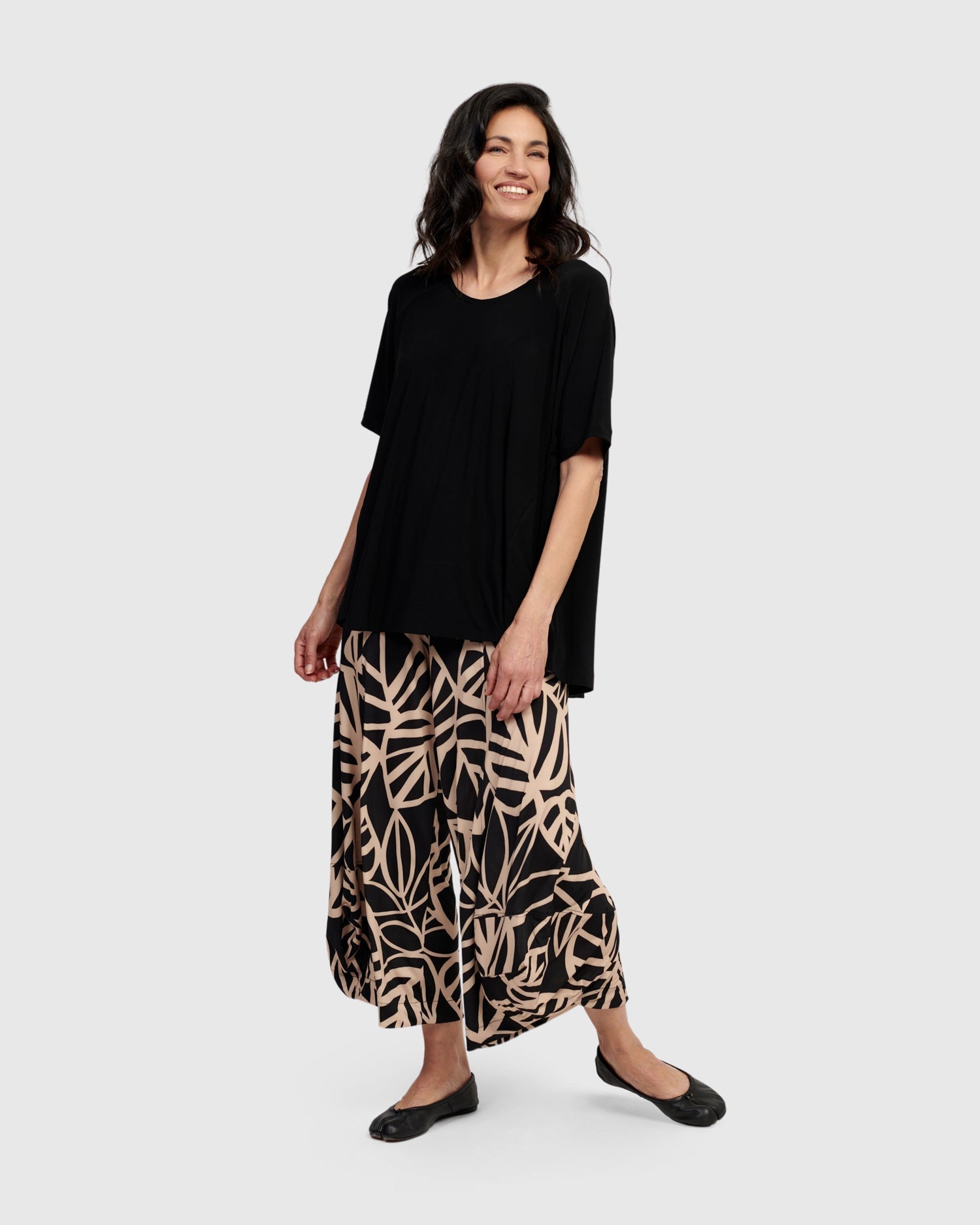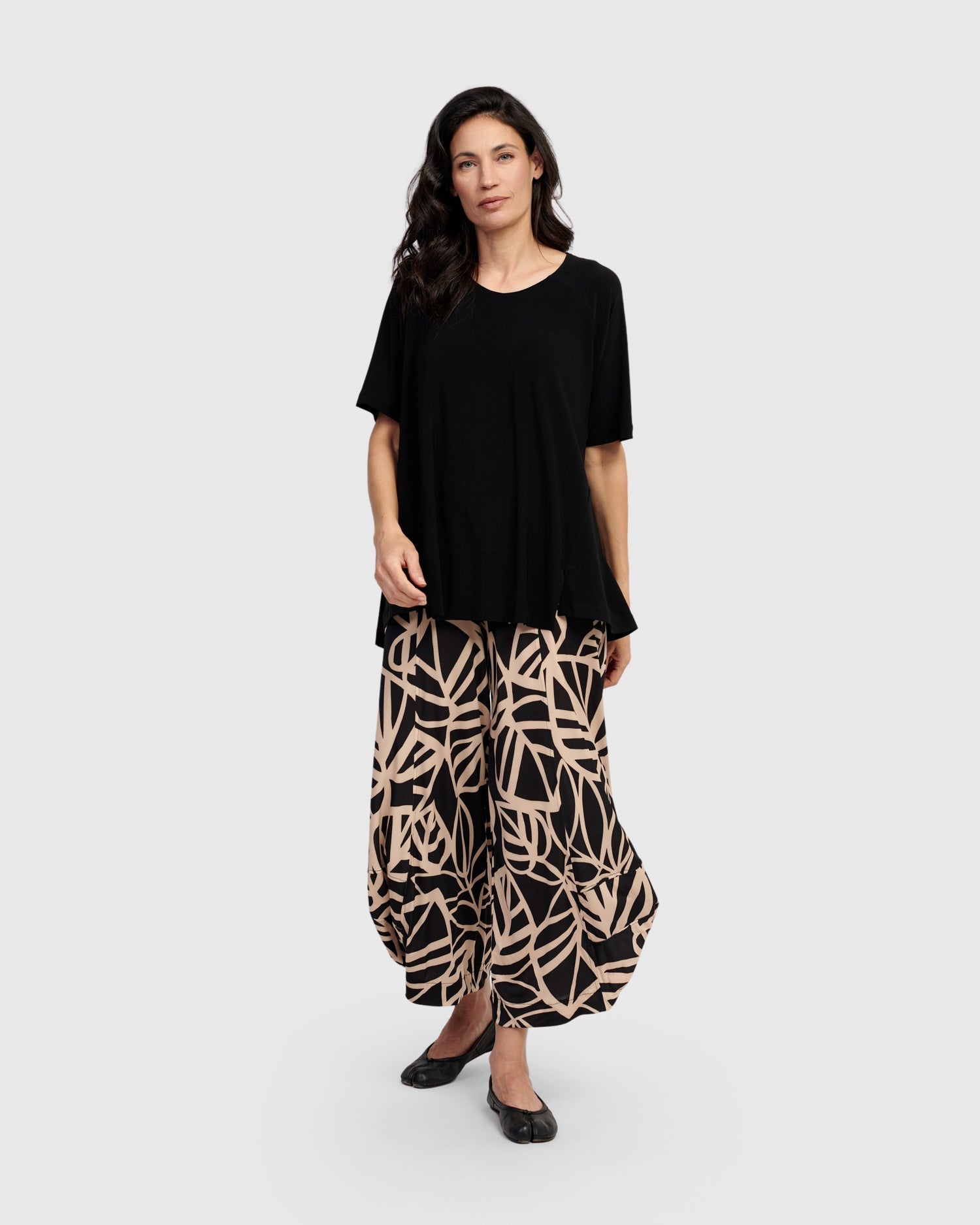 This elevated essential is made in a matte slinky jersey knit. A take on our classic Trapeze Top, it has a scoop neck, short sleeves, a round hem that falls longer in back, plus notched bias-cut sides in front. Oversized fit with an A-line silhouette