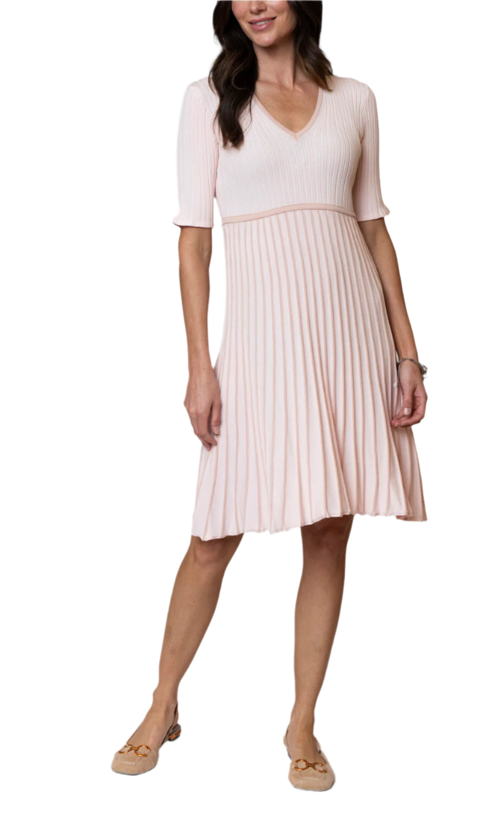 Lara Pleated Short Sleeved Dress / Rose Petal/Rose Dust