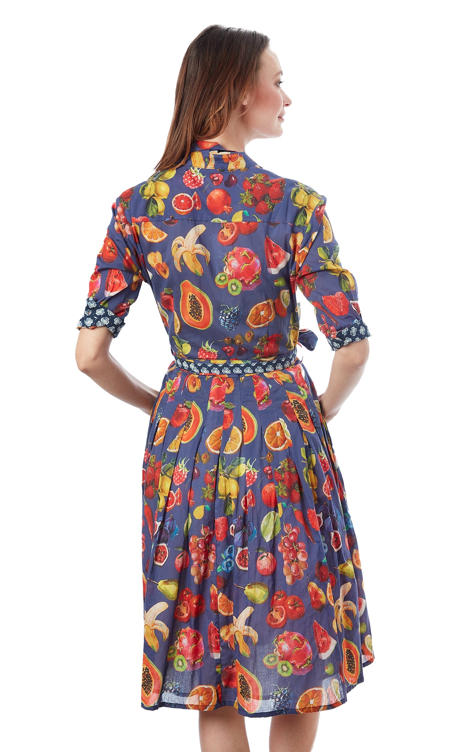 Get ready for the juiciest look of the season! Our Mrs. Maisel Dress in the fruity favorite print is a picnic-perfect delight. With its versatile knee-length silhouette, belted waist, and charming button details down the front, you can easily dress it up or down—either way, it's a winner!