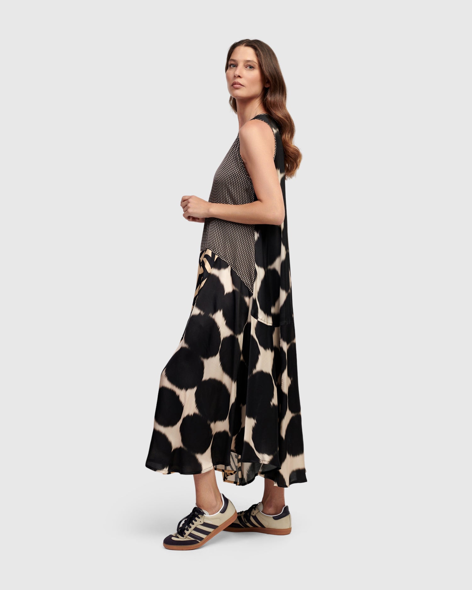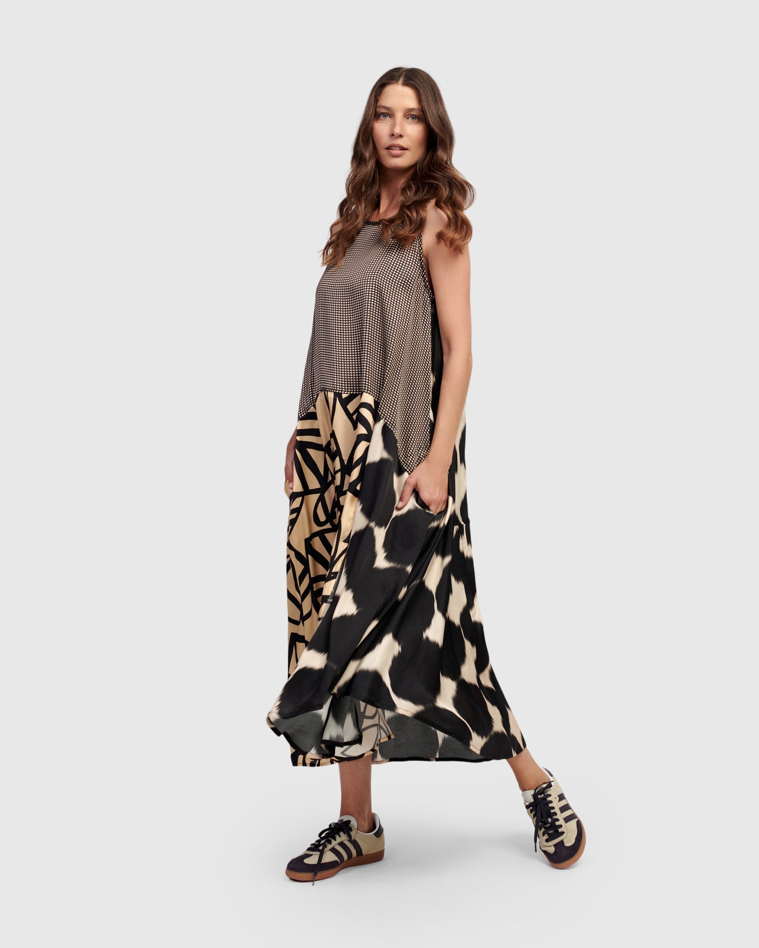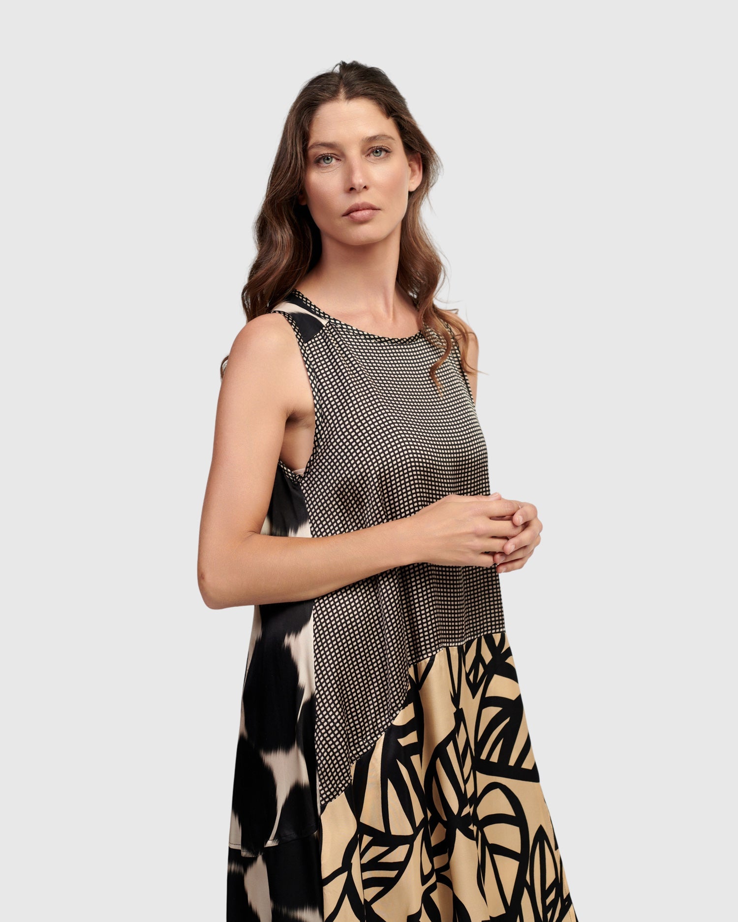 This flowy pullover dress has side pockets and back button closure at the neck. A slim, A-line fit with drop waist evokes a flapper-inspired silhouette with modern details: layered skirting and side pockets.