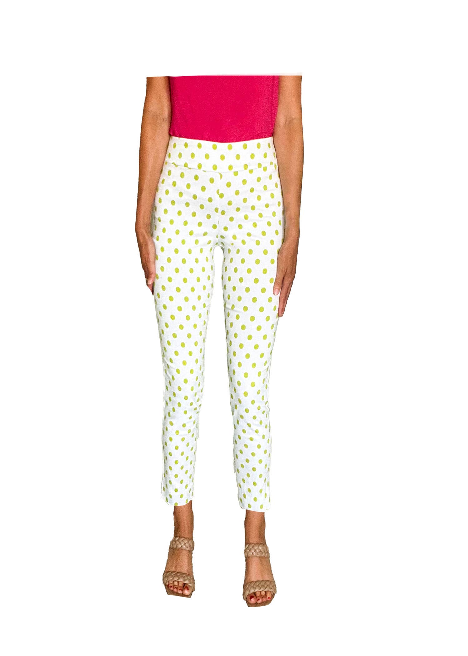 Krazy Larry P507 Pull on Pant - Lime Polka Dot